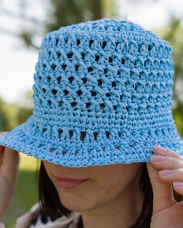 Капелюх із небесно- блакитної якісної рафії буде чудовим супутником навесні та влітку! Не парить! Натуральний матеріал. Ажурний візерунок додасть легкості вашому образу!!!