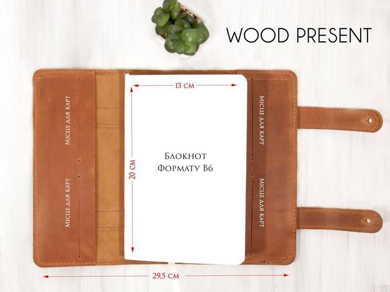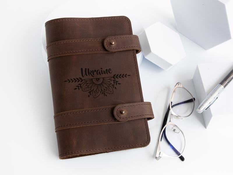 Персональне лазерне гравіювання зробить Ваш блокнот унікальним і яскравим аксесуаром. Він підійде як для ділових зустрічей, так і для персональних записів.Остаточний вид виріб набуде після 2-х тижнів використання. Особливість шкіри полягає в тому, що згодом вона стає тільки приємнішою на дотик і практичнішою у використанні. Шкіра легко дряпається, але ви з легкістю зможете позбавитися дрібних подряпин за допомогою спеціального воску. Будь ласка, враховуйте, що колір гравіювання темний і на темній шкірі залежить від кута огляду.Колір шкіри та гравіювання, може незначно відрізнятися, оскільки кожен шматок шкіри унікальний. А також це залежить від налаштувань вашого монітора чи смартфона.