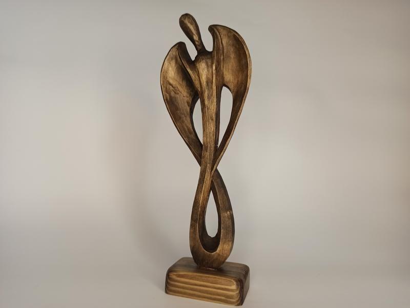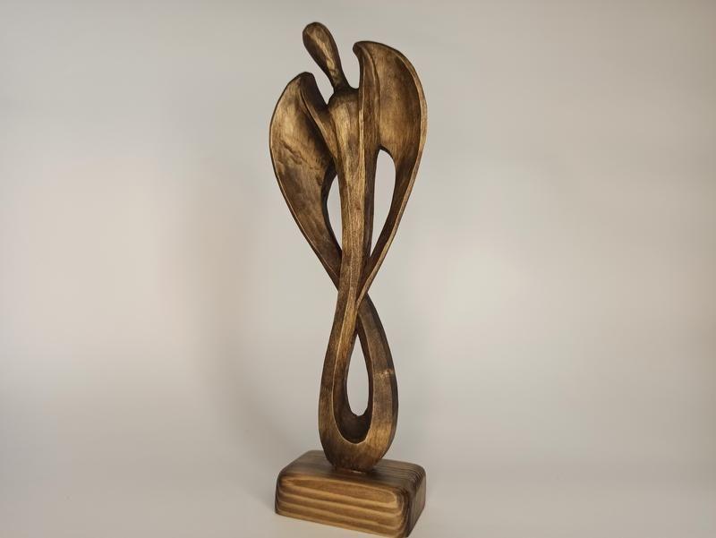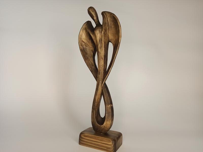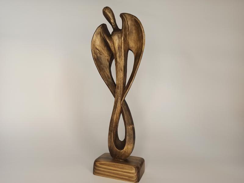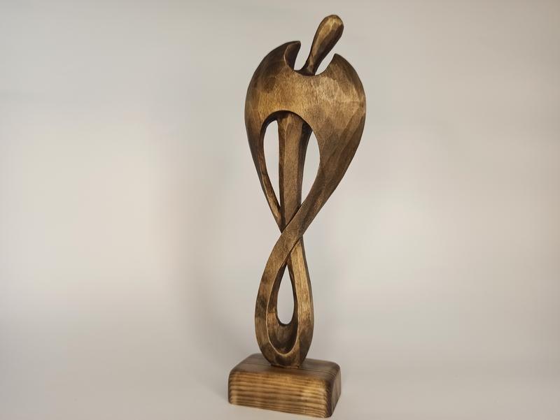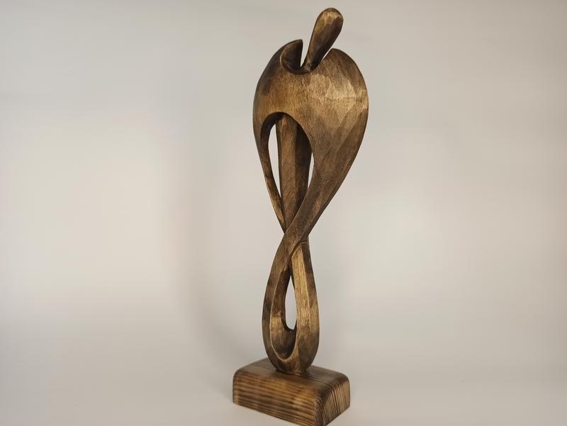 Ця Скульптура виконана в сучасному стилі, вона буде чудовим подарунком, також вона ідеально підійде до вашого інтер’єру, додаючи тепла і затишку. Дерев’яні скульптури та статуетки ручної роботи в інтер’єрі говорять про індивідуальність, успішність свого господаря та його відношення до справді цінних унікальних речей. Дерев’яні вироби завжди були прикрасою будинків з давніх часів, і бажання мати дерев'яні скульптури та фігурки збереглося до наших днів.