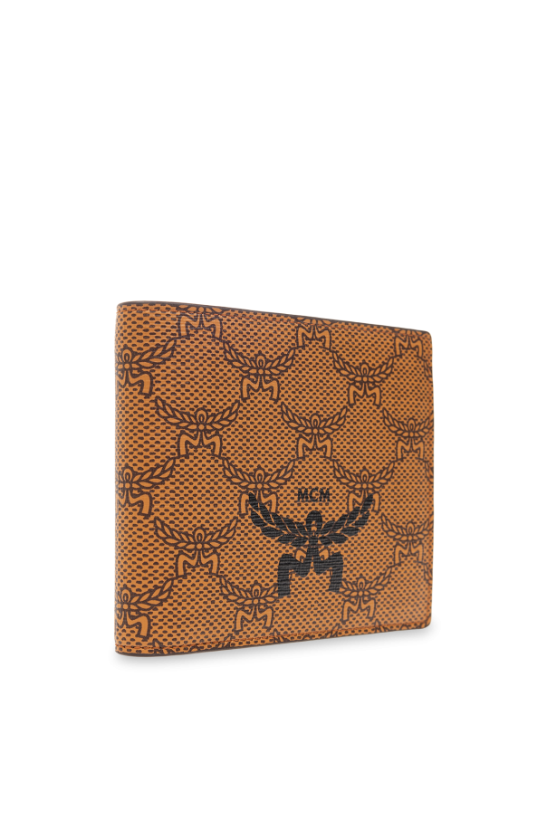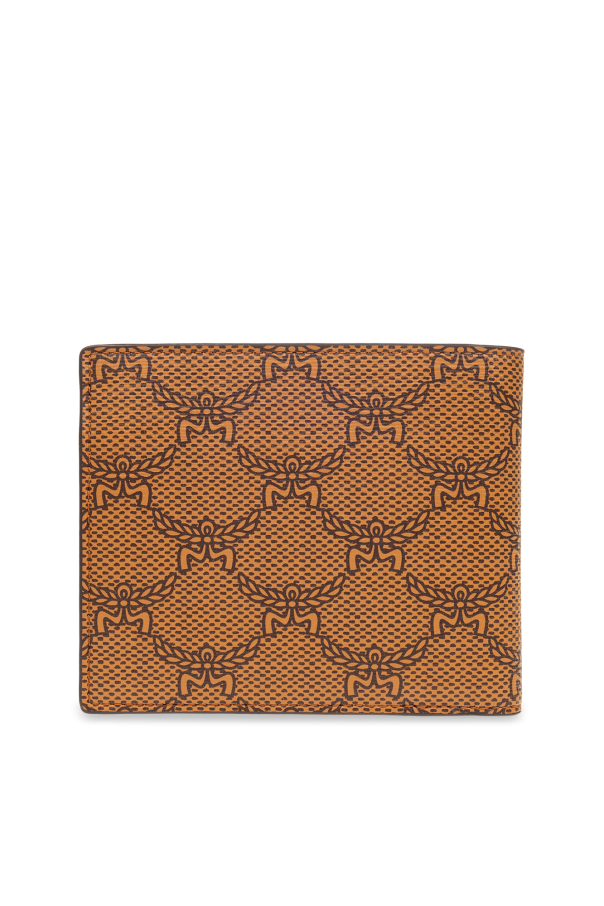 Brown ‘Himmel Bifold’ wallet from MCM. Made of leather, this item is embellished with a logo pattern and features three card slots and one coin pocket.
