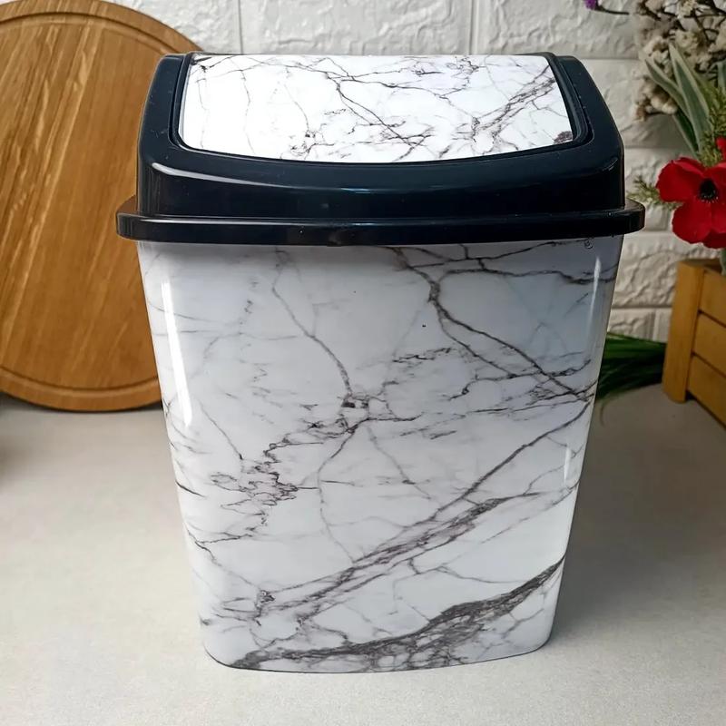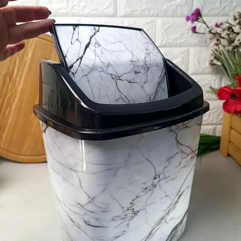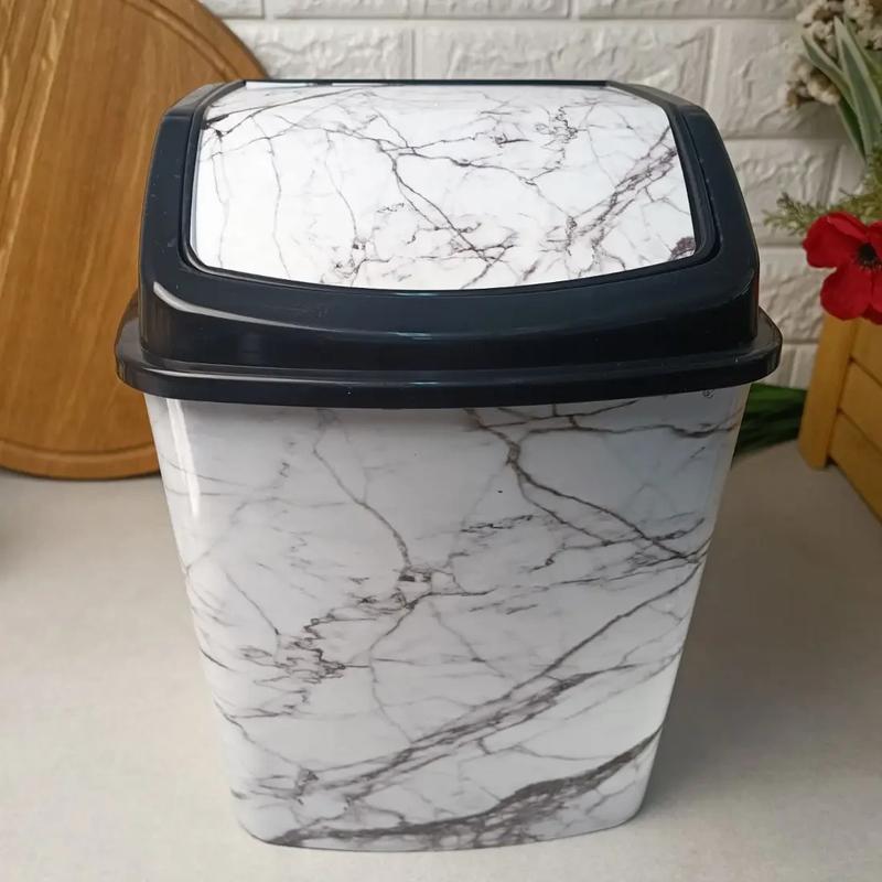 Пластиковое ведро с клапаном для пищевых и других отходов Elif Белый мрамор