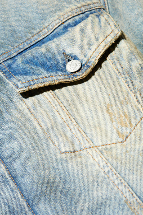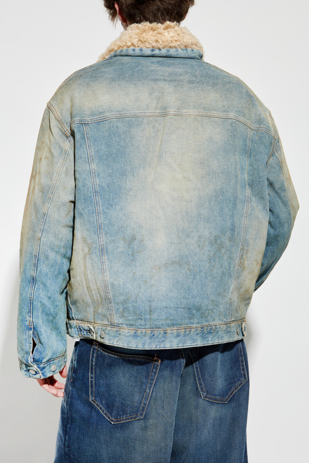 Introducing the Acne Studios Denim Jacket, an exquisite creation from the renowned designer Jonny Johansson. Crafted from premium light blue denim, this jacket embodies a timeless, casual aesthetic with a touch of elegance. The standout feature of this jacket is its large collar adorned with soft, light-colored synthetic fur, offering both warmth and a sophisticated edge. The jacket boasts four pockets: two buttoned chest pockets and two convenient side pockets at the waist, perfect for functionality and style. Fastened with traditional buttons, the jacket features distinctive stitching and subtle distressing, imparting a trendy, slightly worn look. The classic, slightly oversized fit aligns with contemporary men's fashion trends, making it a versatile addition to any wardrobe. Inside, the jacket is lined with a material akin to the collar, ensuring comfort and insulation during cooler days. The dominant light blue hue, complemented by gentle discolorations and wear, contributes to its unique vintage charm. Why Choose This Product? Crafted from high-quality cotton denim Elegant large collar with synthetic fur trim Four practical pockets for added convenience Classic, slightly oversized fit for modern appeal Warm interior, ideal for cooler weather Designed by Acne Studios, synonymous with innovation and quality