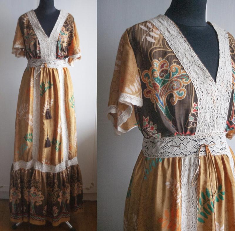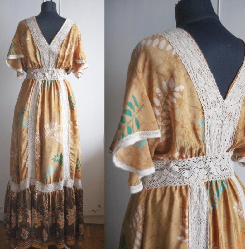 Распродажа собственной уникальной коллекции одежды из костюмерной фотографа - стилиста. Платье для лесной феи 💚. Невероятный природный принт. Натуральный шелк. Индия. Состав: ткань шелк, кружево вискоза. Размер с-м, талия регулируются. На теле максимально приятно ощущается, легкая. В живую красивее чем на фото.