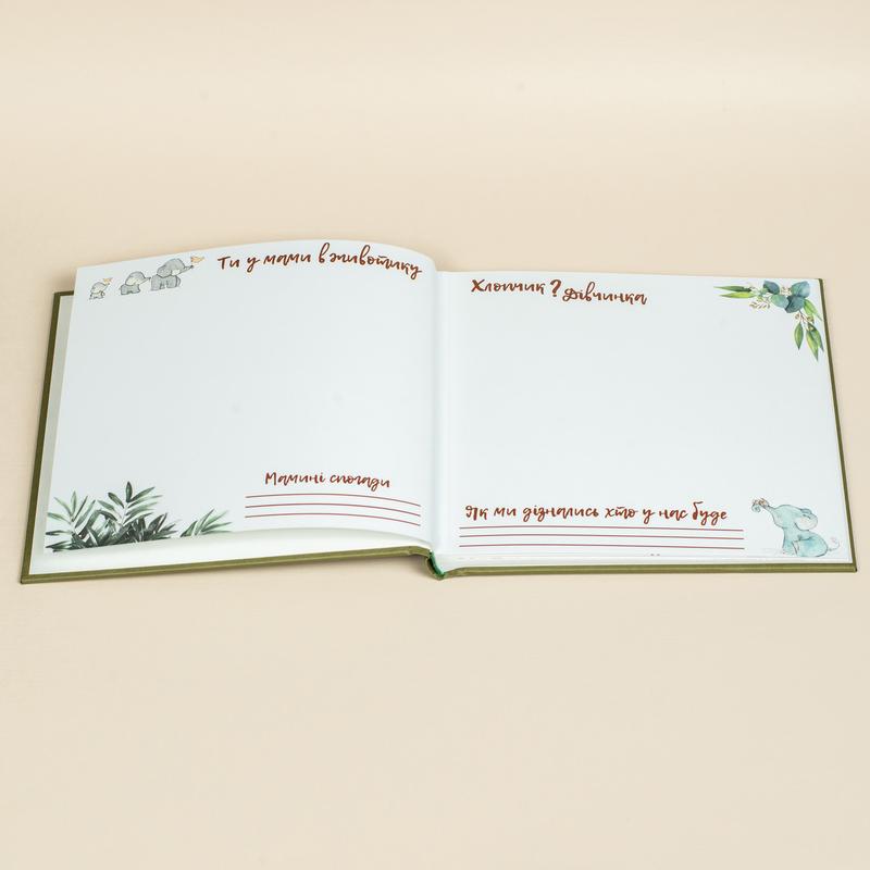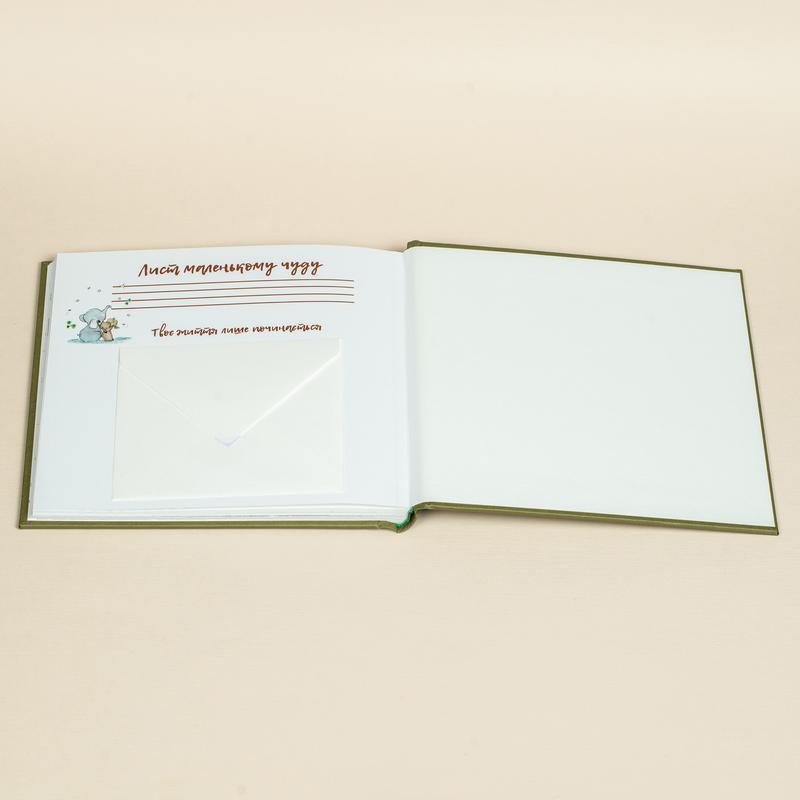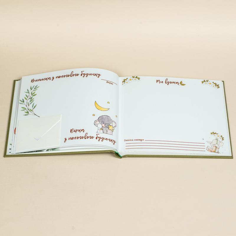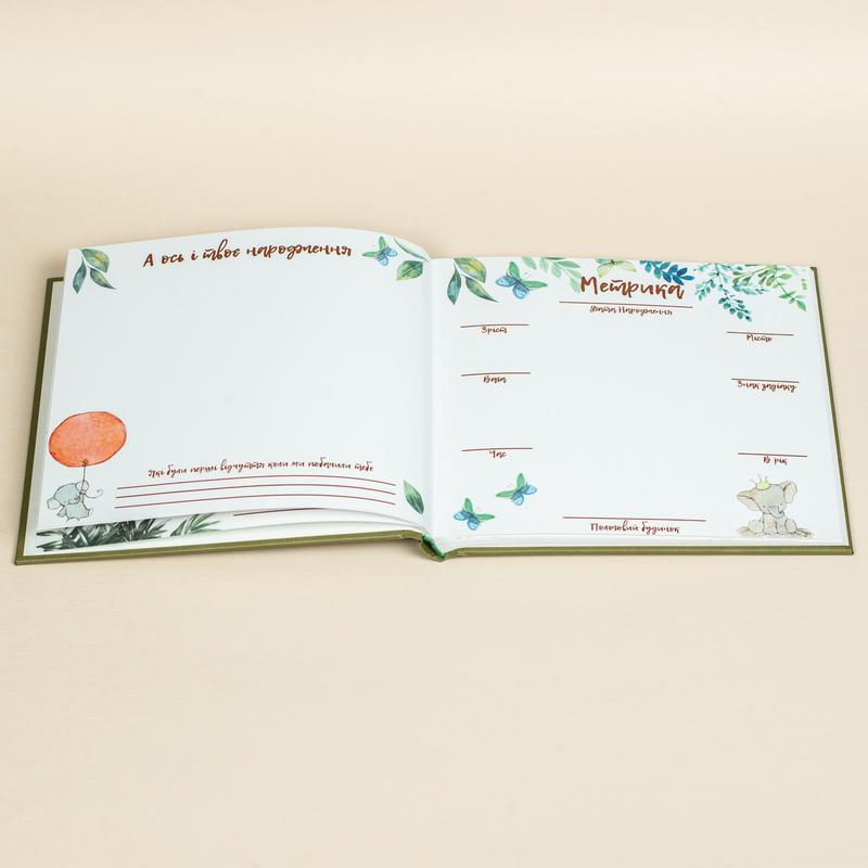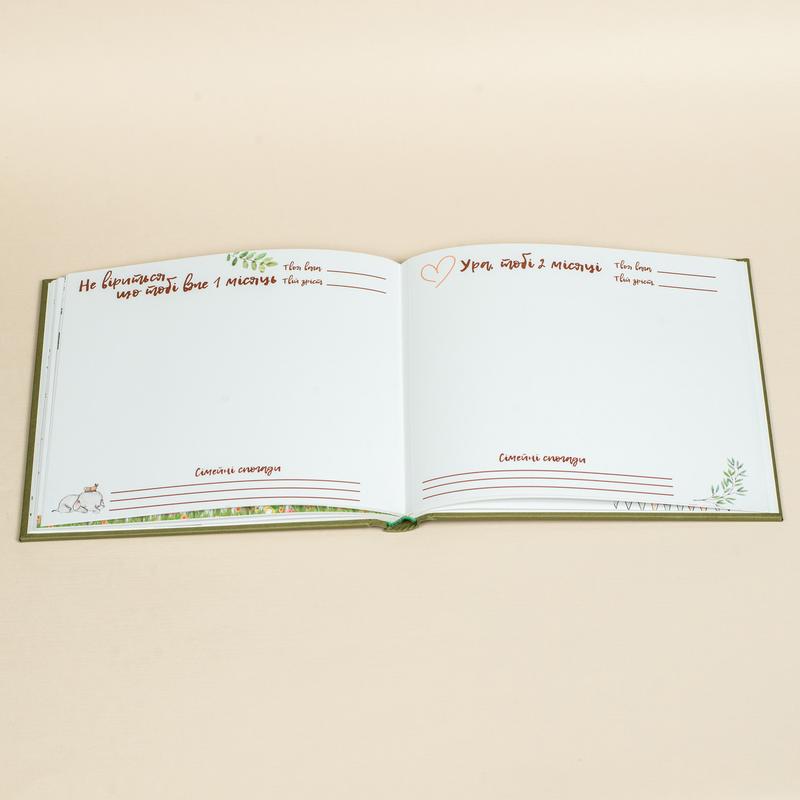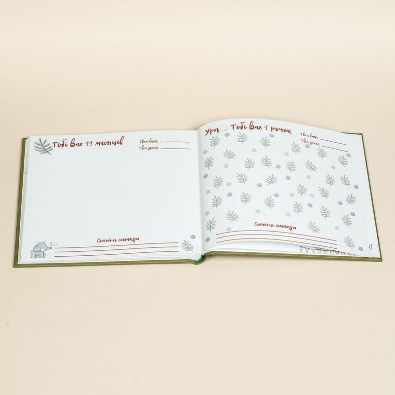 - сторінки з щільного мелованого паперу, всього в альбомі - 40 сторінок, з них 37 сторінок для фотографій, інші для запису важливих подій з момента народження і до рокуНа кожну сторінку вміщується по 2 фото розміром 9х13 (саме в цей альбом - 70