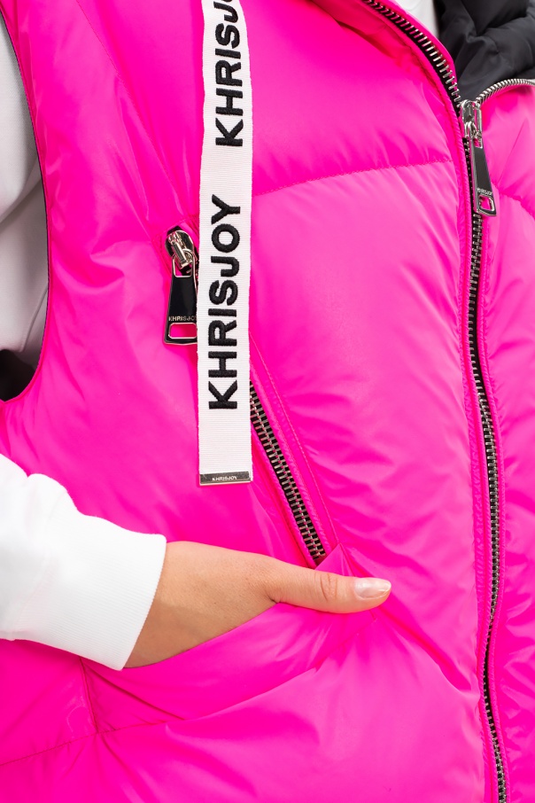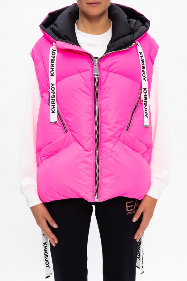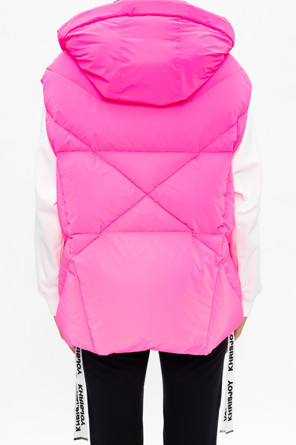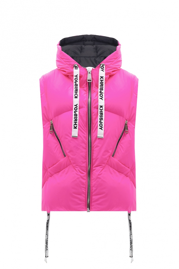 Neon pink vest from Khrisjoy. Padded with goose down, this garment features a zip fastening, hood with logo-embroidered drawstrings, two slip pockets, two zip pockets and a drawstring hem.
