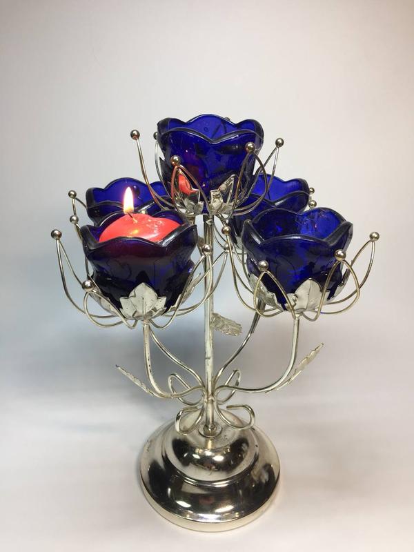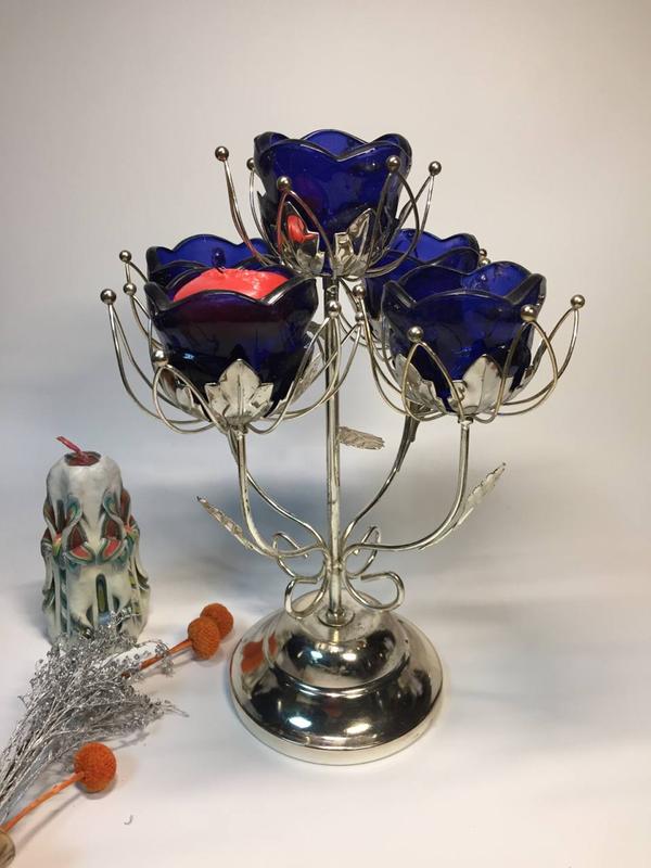 Подсвечник декор для 5-и свечей 30 см. статуетка фигурка Синий букет цветы н1278