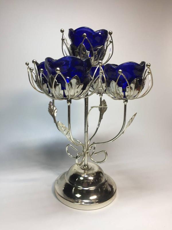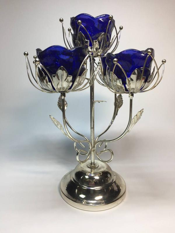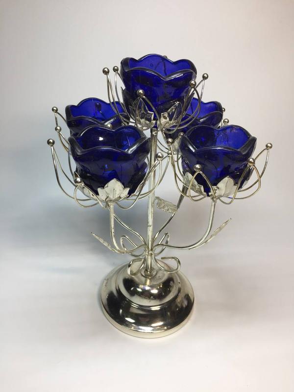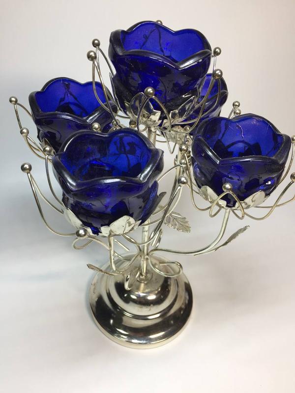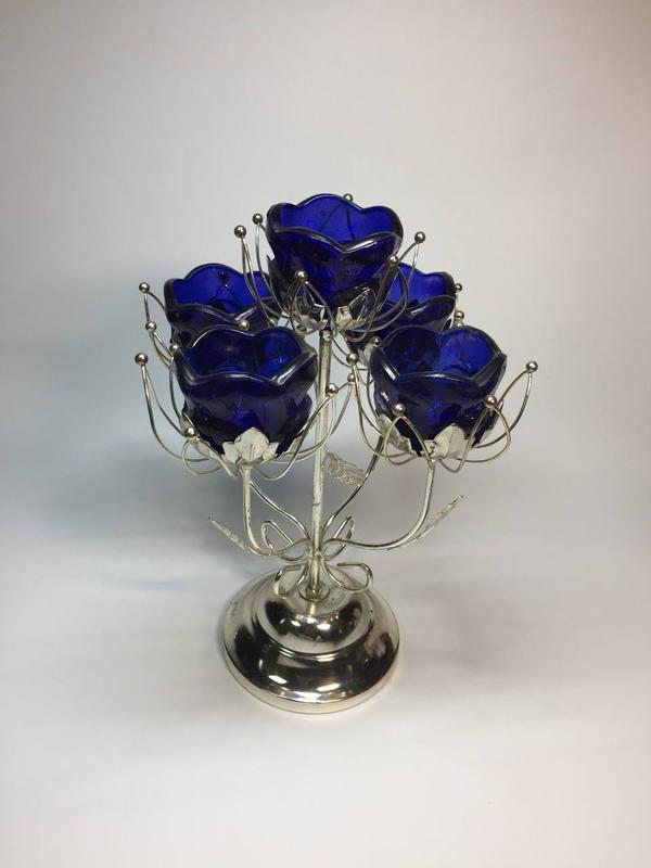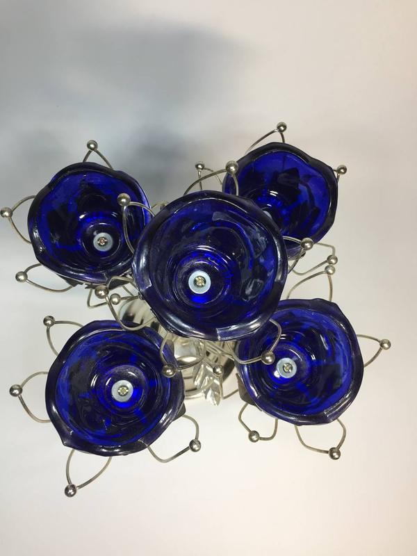 5 цветов синее стекло с серебряными листьямиВысота 30 см.