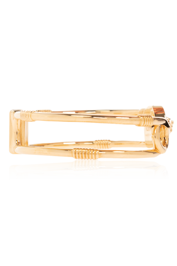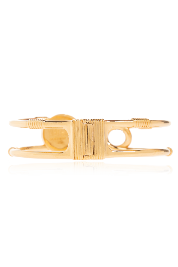 Gold-tone cuff bracelet from Versace. Made of brass, this item showcases the brand's signature Greca and Medusa face motifs.