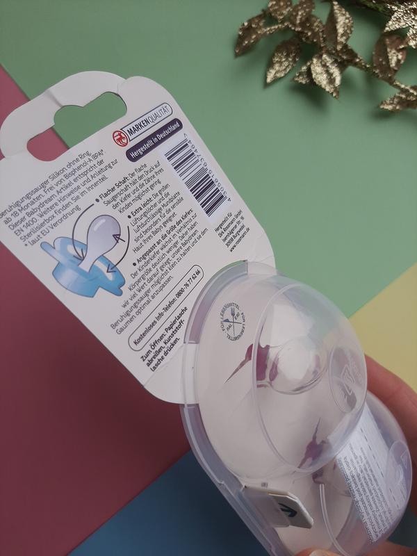 Безопасный силикон, плоский и круглый стержень соски максимально снижает давление на челюсть и зубы ребенка.