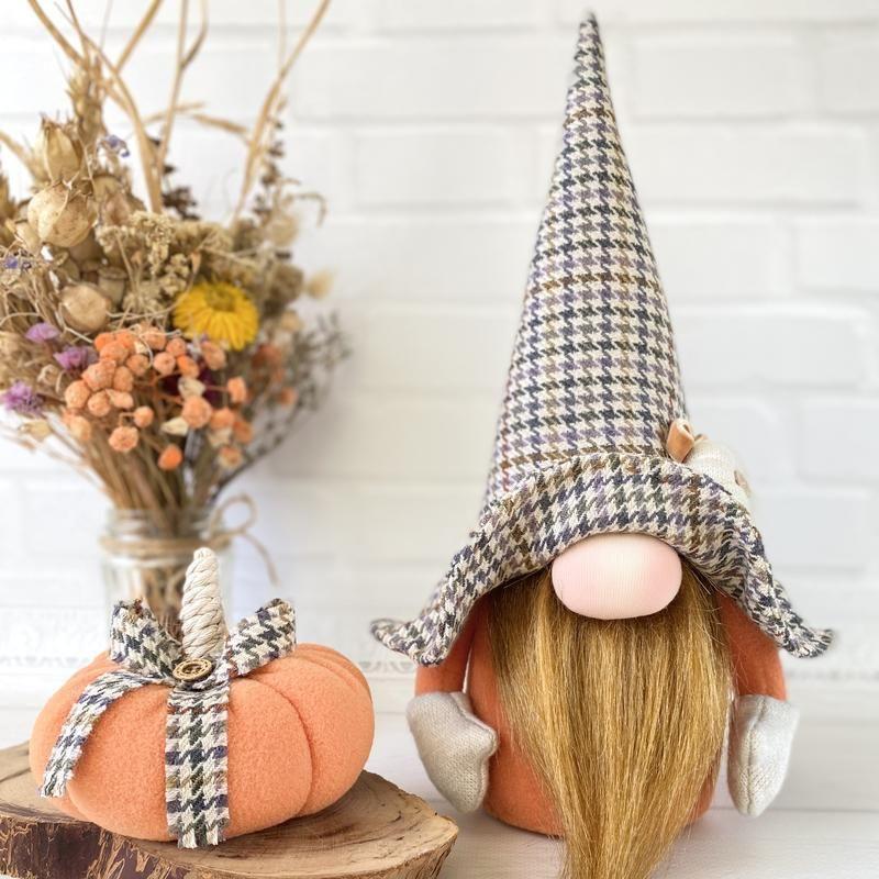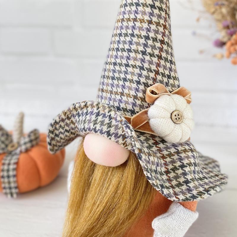 Очень душевный и уютный гном в скандинавском стиле! Идёт в наборе с тыквой. Символизирует достаток и богатство! Сшит из качественного итальянского флиса, шляпа шерсть,армирована( вы можете выкладывать поля по своему желанию), борода искусственный мех. Ручки гнутся. Размер игрушки 30 см, диаметр тыквы 11см.