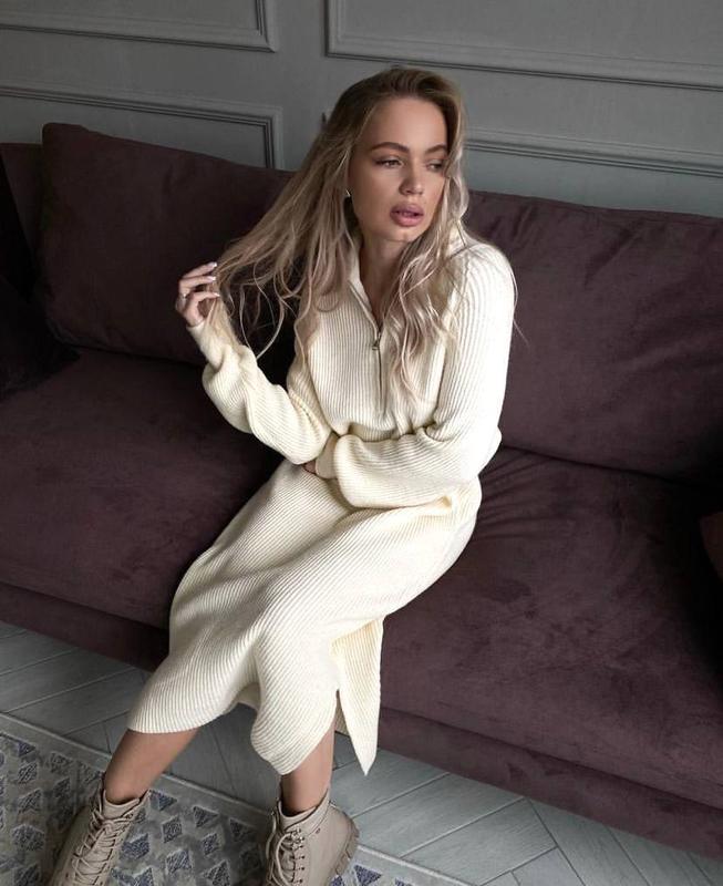 Ангорова сукня у рубчик вільного крою із високою горловиною на блискавці