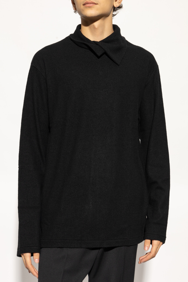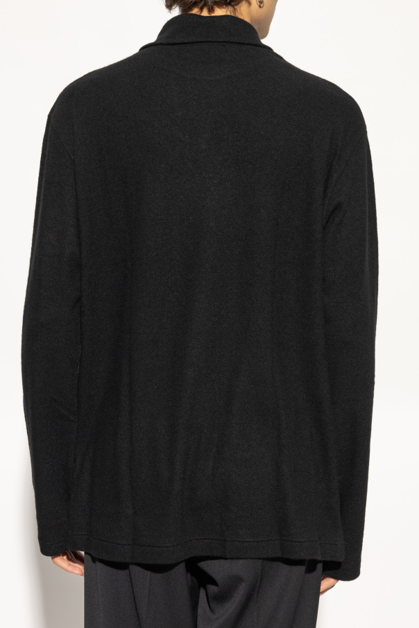 Experience the epitome of sophistication with our exclusive wool sweater from the renowned fashion house of Yohji Yamamoto. This timeless piece encapsulates the essence of elegance and comfort, perfect for the discerning individual. Crafted from the finest quality wool, this sweater features a classic straight cut with long sleeves, exuding a minimalist charm. The unique triangular fold-over collar adds a distinctive touch, ensuring you stand out with subtle sophistication. Its simple hem and cuffs underscore the purity of its design, making it a versatile addition to any wardrobe. The deep black hue of the sweater enhances its versatility, allowing it to seamlessly transition from casual to formal settings. Whether paired with jeans for a relaxed look or with tailored pants for a more polished ensemble, this sweater embodies understated luxury. Why Choose This Product? Designed by the illustrious Yohji Yamamoto, a pioneer in avant-garde fashion. Made from premium wool, ensuring unparalleled comfort and warmth. Features a unique triangular collar that sets it apart from conventional designs. Versatile black color suitable for various occasions and styles. Effortlessly blends Parisian chic with a hint of rebellious spirit.