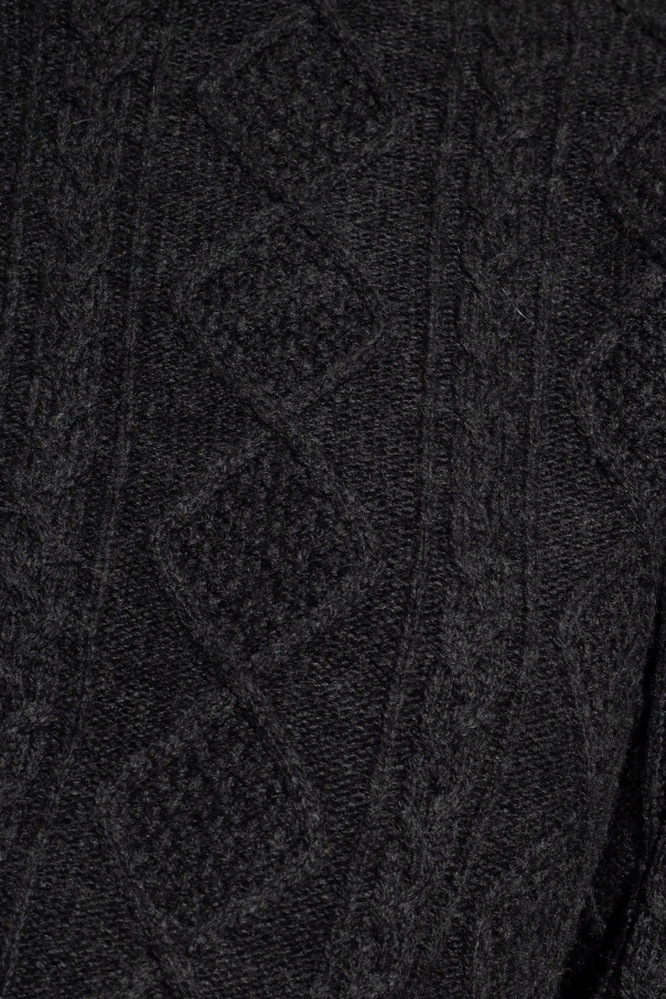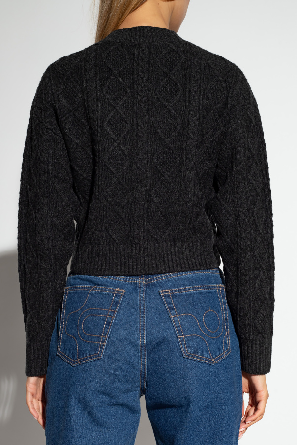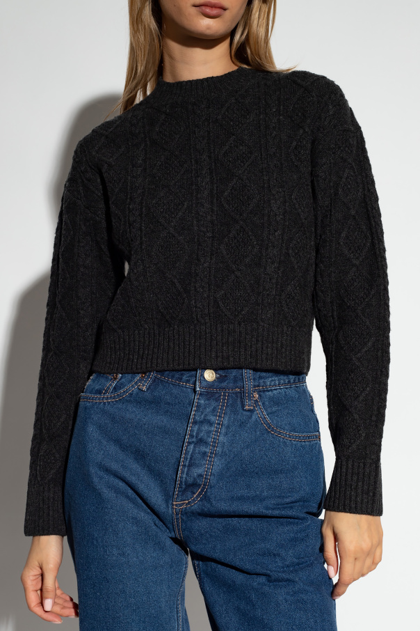 Dark grey ‘Eliette’ sweater from Samsoe Samsoe. Crafted from wool with a decorative knit, this garment features a round neck and long sleeves.