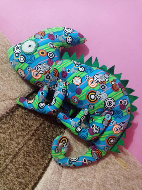 Декоративная игрушка подушка хамелеон, удобная работа.