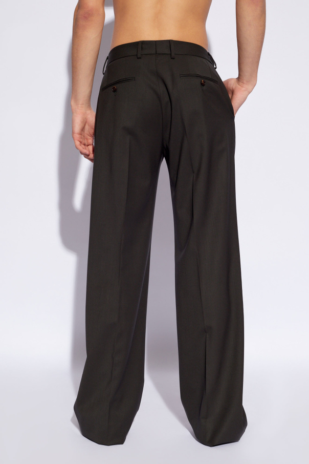Dark grey pleat-front trousers from Dolce & Gabbana. Made from wool, this pair falls with wide, straight legs and features a zip fly with a button, two front slant pockets and two back button pockets.