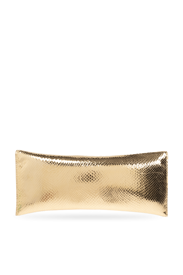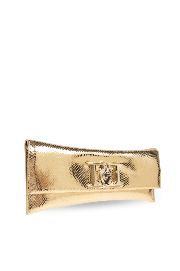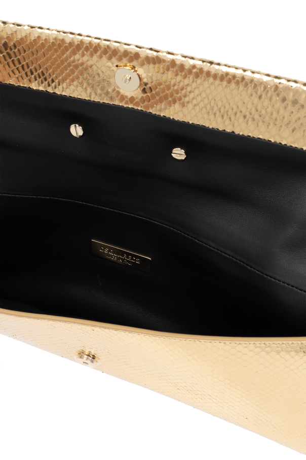 Introducing the Kopertówka z logo by Dsquared2, an epitome of refined elegance and modern luxury. This exquisite clutch, enveloped in a sumptuous gold hue, is meticulously crafted from premium snake-print leather, exuding an aura of sophistication. The clutch's rectangular, elongated form, accentuated by subtly rounded edges, is both contemporary and timeless. The snake-skin texture not only enhances its exclusive appeal but also provides a tactile experience that is second to none. At the forefront, the metallic logo—comprising two letters and a stylized snake element—serves as a distinctive hallmark of the designer's brand. The magnetic closure ensures both convenience and security, making it a practical yet stylish accessory. Inside, the clutch is lined with sumptuous black leather, featuring a small metal plaque engraved with the designer's name, epitomizing the attention to detail and quality synonymous with high-end fashion. Why Choose This Product? Luxurious Material: Premium snake-print leather for a sophisticated look. Unique Design: Distinctive metallic logo and stylish shape. Practicality: Magnetic closure and well-crafted interior. Exclusivity: Limited edition by acclaimed designers Dan and Dean Caten of Dsquared2.