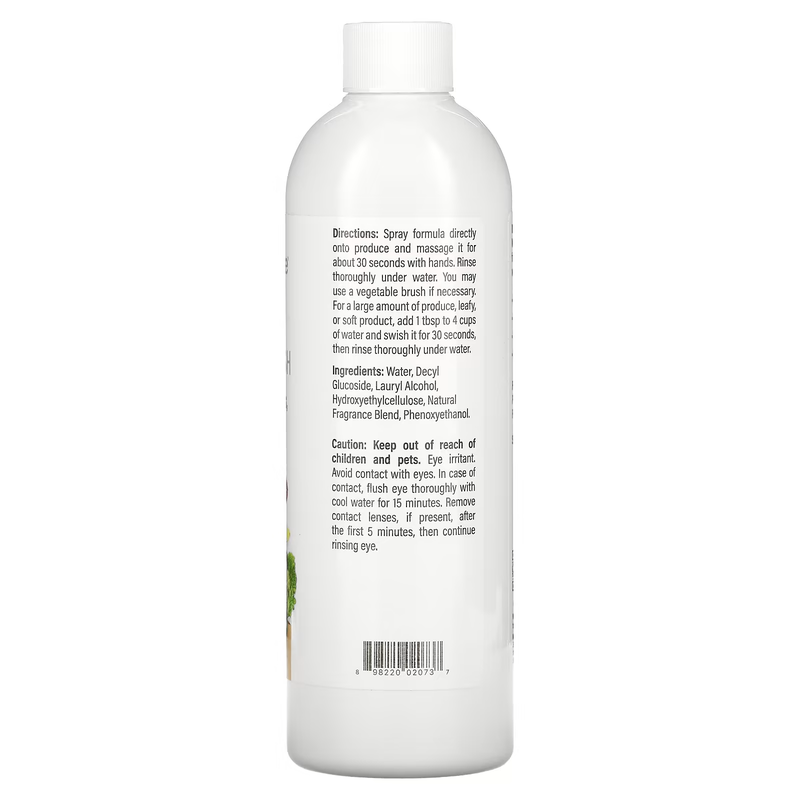 Розпиліть засіб безпосередньо на продукт і протирайте близько 30 секунд руками. Ретельно змийте під водою. За необхідності ви можете використовувати щітку для овочів. Щоб помити велику кількість продуктів, листові чи м’які продукти, додайте 1 столову ложку в 4 склянки води та промийте їх протягом 30 секунд, а потім ретельно змийте водою.Інші інгредієнти
