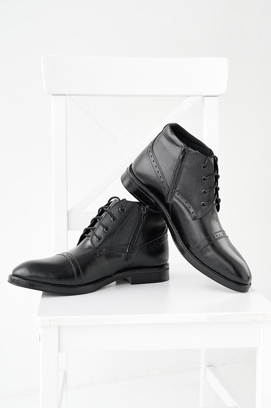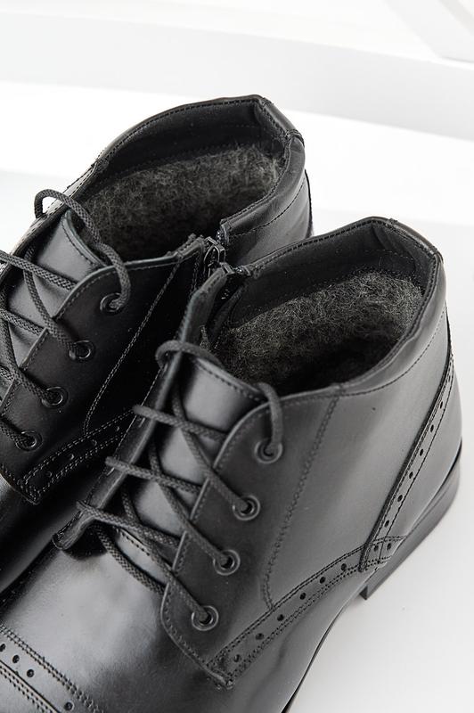 45 - 30 смСтильні класичні чоловічі чорні туфлі натуральна шкіра з хутром,чоловічі якісні черевики на зиму пав