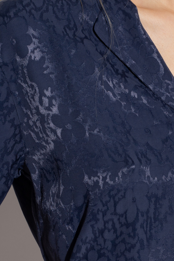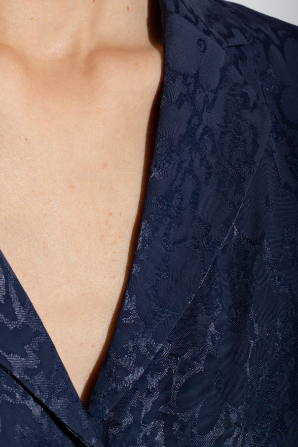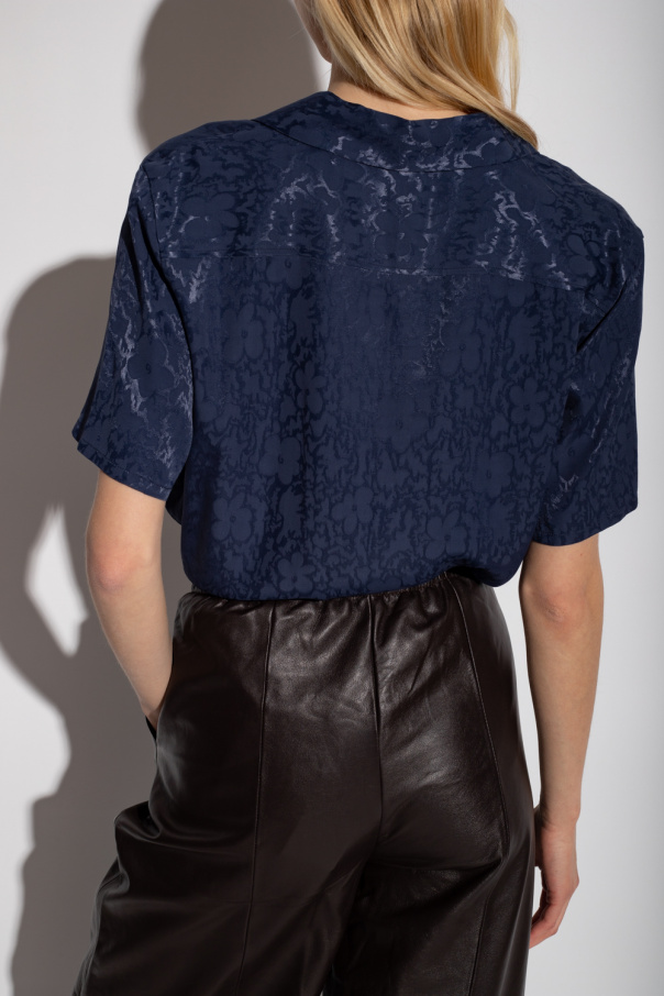 Navy blue shirt from PS Paul Smith. Distinguished by a sparkling pattern, this style features button fastenings, short sleeves and bottom slits.