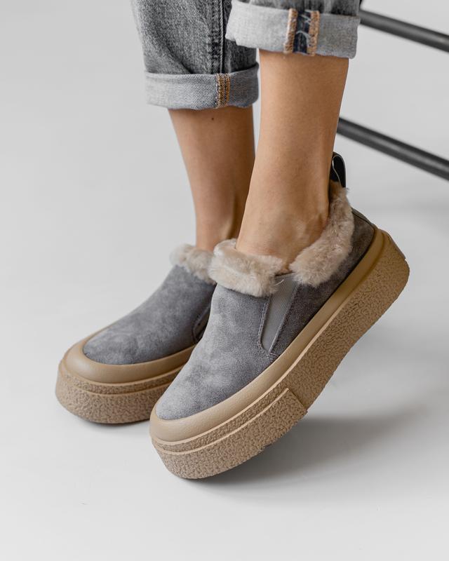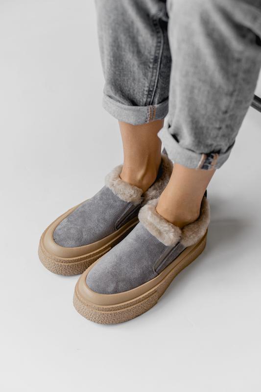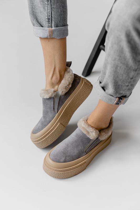 Сірі утеплені кросівки на бежевій підошві - гармонія стилю та комфорту в одному взутті 🍁