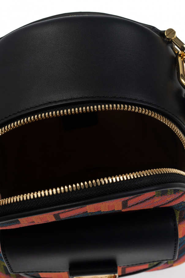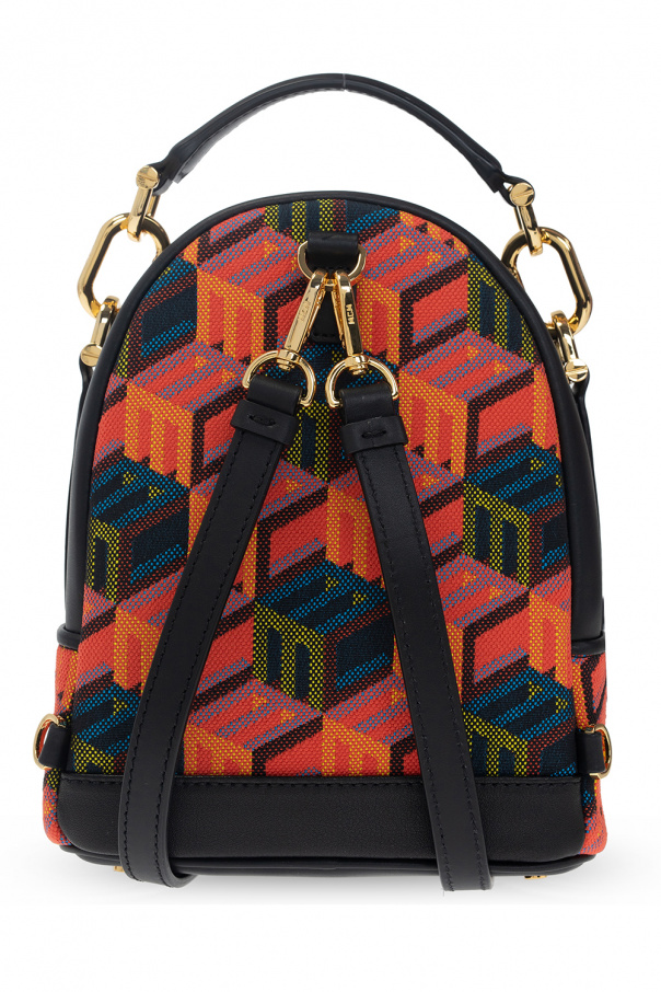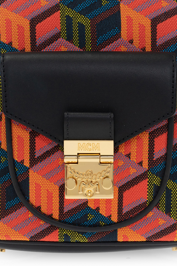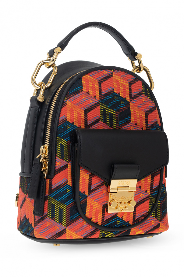 Multicoloured ‘Patricia’ backpack from MCM. Embellished with a jacquard ‘Cubic Monogram’ pattern, this design features a two-way zipper, a frontal pocket with a gold-tone ‘Laurel Lock’ fastener, a half-round handle, detachable shoulder straps and one internal compartment with a slip pocket.