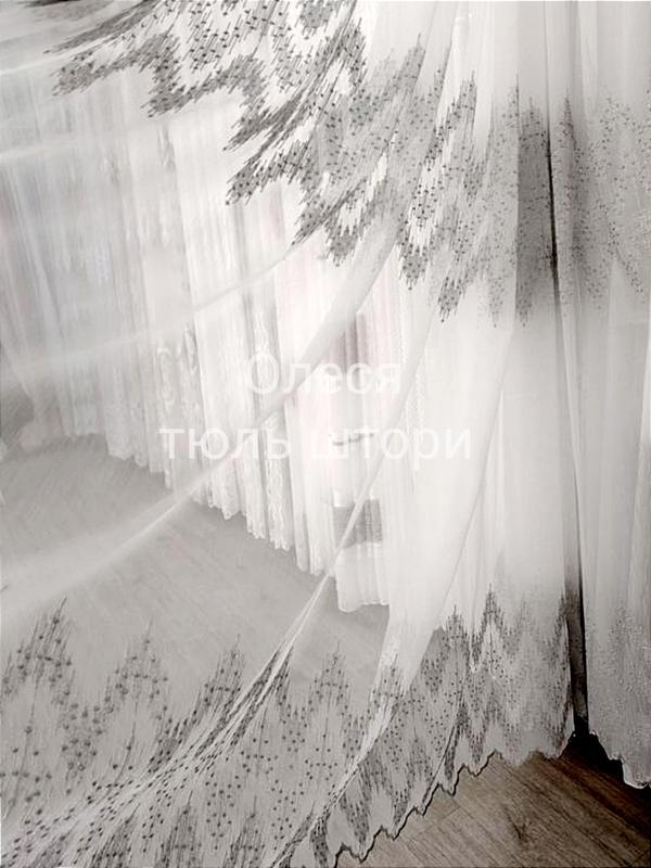 Тюль бамбук з вишивкою колір теплий білий, вишивка сірого кольору (металік) по низу і на рівні підвіконня❗
