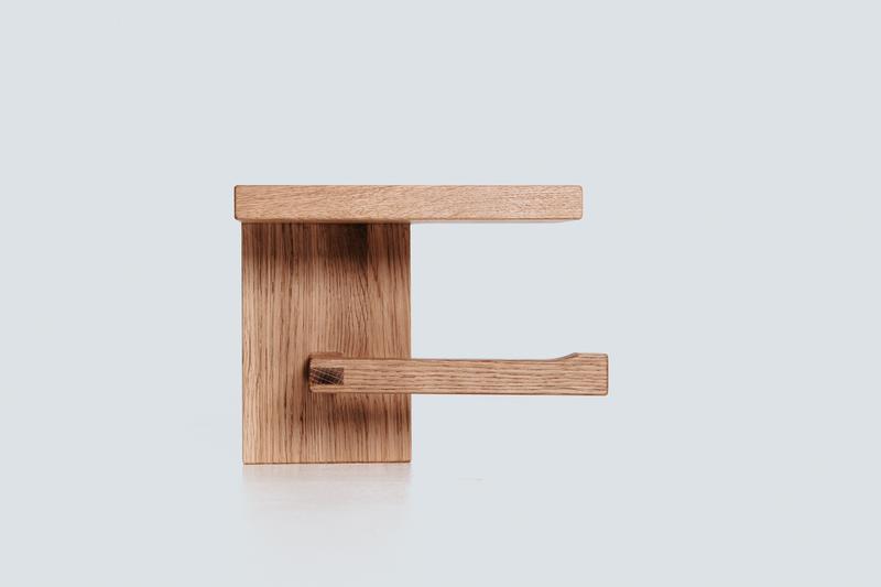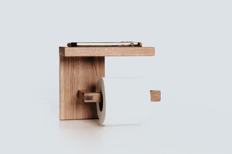 Оригінальний тримач для туалетного паперу, виготовлений з натурального дерева, з поличкою.