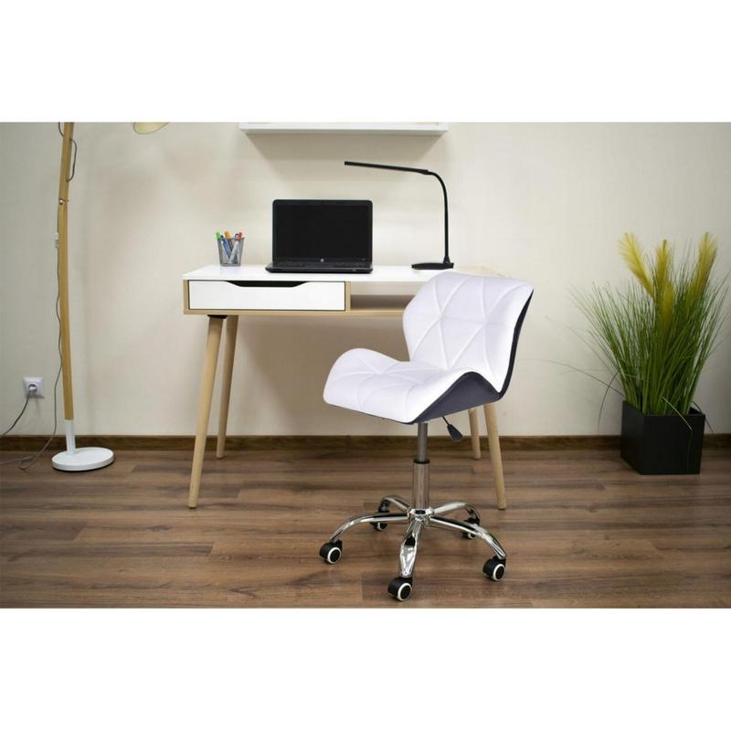Стильний офісний стілець B-531 призначений для облаштування робочого місця персоналу, а також може бути встановлено в будинку. Металева опора і хрестовина виготовляються з хромованої сталі, під сидінням встановлений механізм регулювання висоти посадки. Цільне сидіння і спинка виготовлені з поліпропілену, обшиті якісною екошкірою.