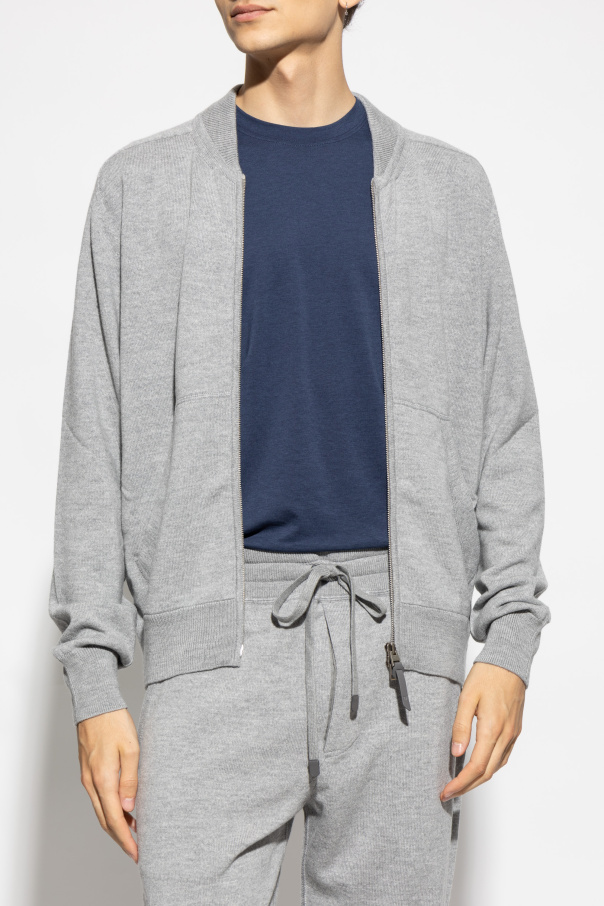 Introducing the epitome of sophistication and comfort: the Gray Zip-Up Cardigan from the exclusive collection by Tom Ford. This exquisite piece of attire harmoniously blends classic design with contemporary elegance. Crafted from the finest materials, including cashmere and wool, this cardigan promises unparalleled softness and a lightweight feel. The classic, straight cut with long sleeves ensures a timeless silhouette, while the front zipper adds a modern touch. Symmetrical side pockets, adorned with subtle stitching, enhance the garment’s refined aesthetic. A small logo patch featuring "Tom Ford" on one of the pockets subtly signifies its prestigious origin. The versatile gray hue renders this cardigan a seamless addition to any wardrobe, effortlessly complementing both casual and more polished ensembles. As depicted in the product images, it pairs equally well with a navy t-shirt or gray sweatpants, showcasing its adaptability. Why Choose This Product? Luxurious Materials: Crafted from premium cashmere and wool. Elegant Design: Classic cut with refined details. Versatile Style: Perfect for both casual and formal looks. Exclusive Branding: Features the iconic "Tom Ford" logo. Comfortable Fit: Lightweight and soft for all-day wear.