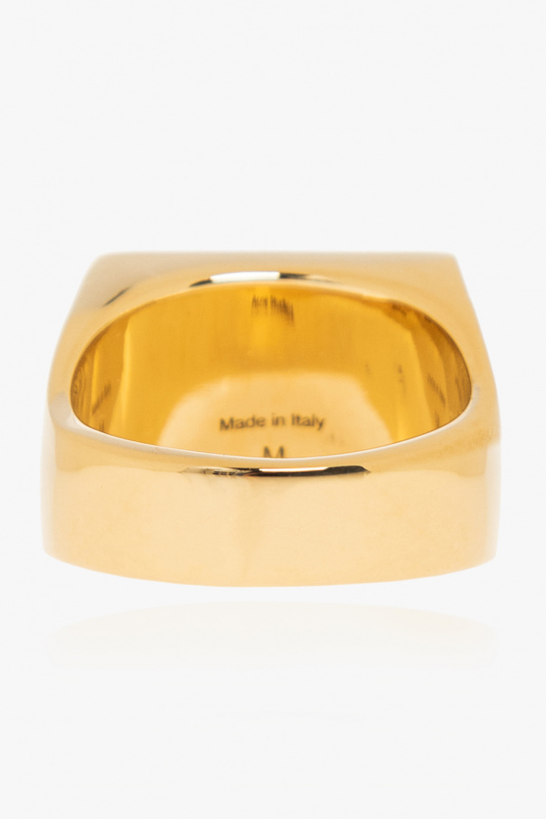 Gold-tone ring with a ‘Face’ logo and silver-tone crystals from Acne Studios. Made of brass.