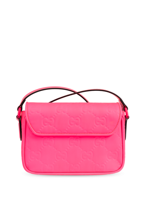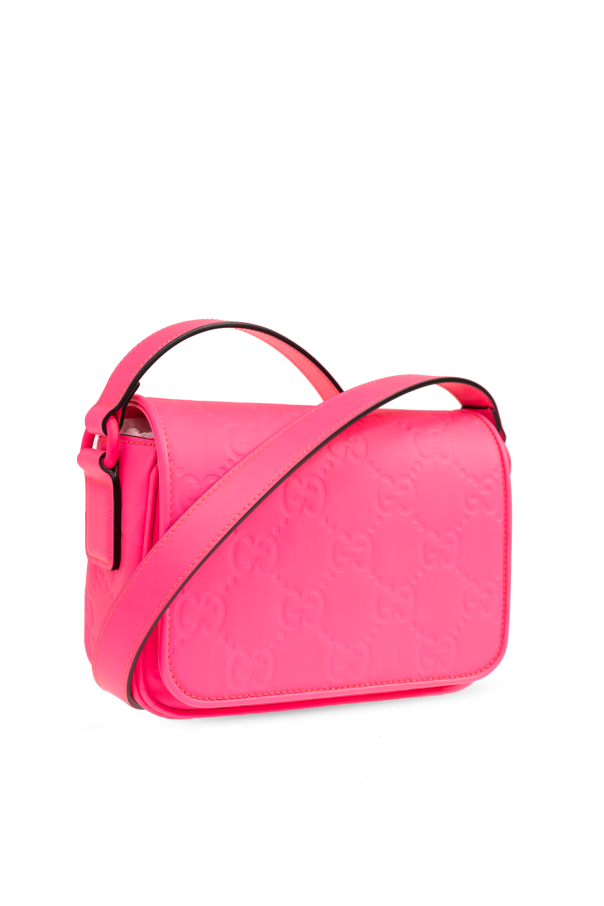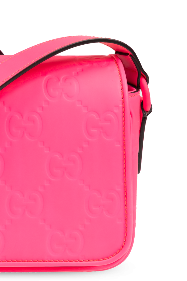 Introducing the Gucci Shoulder Bag, an epitome of sophisticated elegance and modern design. This exclusive piece, crafted under the visionary direction of Alessandro Michele, showcases the brand's renowned luxury and Italian craftsmanship. The bag features a compact, rectangular shape with a rigid structure that maintains its form impeccably. Adorned with a distinctive embossed pattern of repeating "GG" initials, it exudes a subtle yet unmistakable brand identity. Constructed from high-quality neon pink leather with a rubber effect, this bag offers a radiant and contemporary aesthetic. It is equipped with a magnetic flap closure for secure storage and a long, adjustable shoulder strap made from the same premium material, ensuring both style and comfort. The interior, finished in a matching pink hue, is designed for practicality with a main compartment and two card slots, providing ample space for your essentials. Why Buy This Product? Iconic Design: Embossed "GG" pattern synonymous with Gucci's heritage. High-Quality Materials: Crafted from luxurious leather with a rubber effect. Secure and Practical: Magnetic flap closure, spacious interior with dedicated card slots. Adjustable Comfort: Long, adjustable strap for versatile carrying options. Exclusive Appeal: A standout accessory for both everyday and elegant occasions.