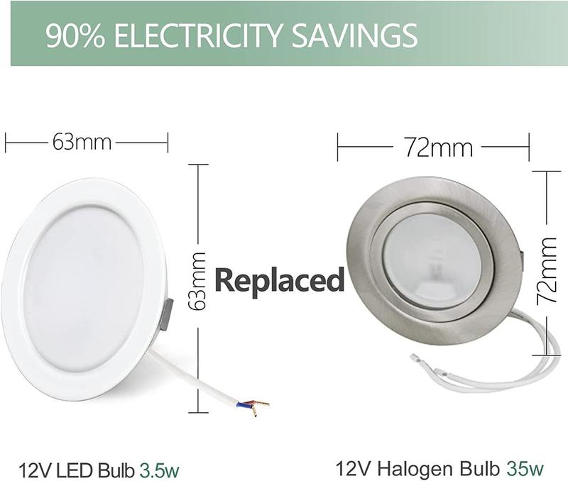 яркостью 3,5 Вт 3000 K Теплый белый светодиод Плоский 12 В 300 лм Отверстие