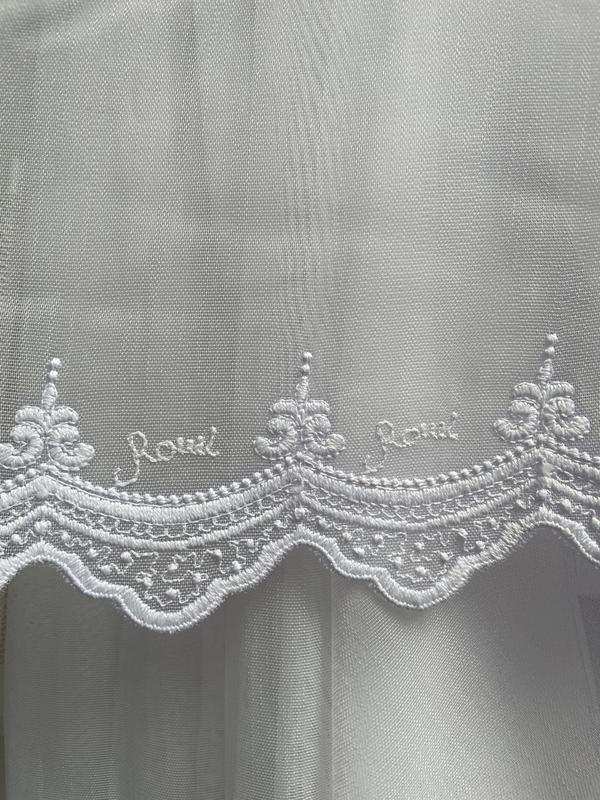 робить такі вироби практичними та зносостійкими.Нижній край тюлі прикрашений вишивкою, яка додає виробу вишуканості та