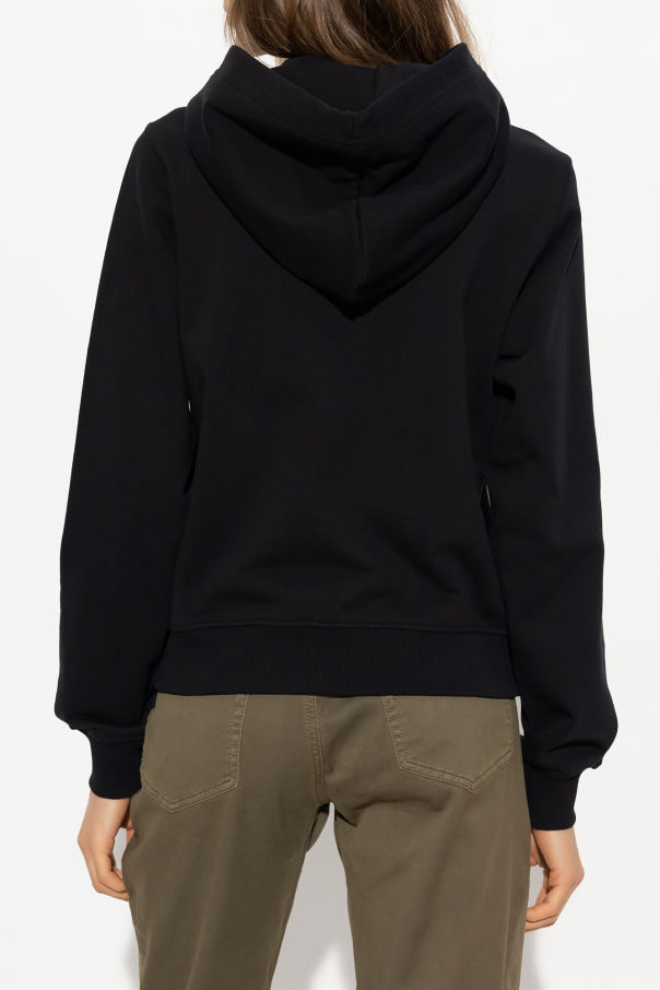 Black ‘F-REGGY’ sweatshirt with a drawcord-adjustable hood from Diesel. Crafted from cotton jersey, this style features a colourful butterfly print accompanied with yellow logo embroidery on the front and ribbing on the bottom hem and cuffs.