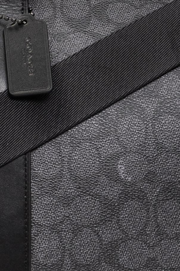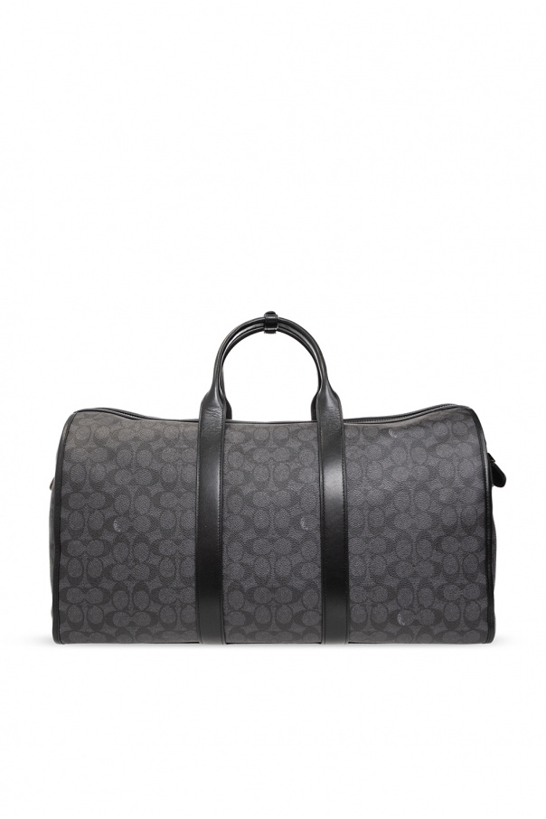 Black and grey duffel bag from Coach. Crafted from monogrammed canvas and trimmed with leather, this design features a two-way zip fastening, two half-round handles, a detachable and adjustable strap and one internal compartment with one zip pocket and three slip pockets.
