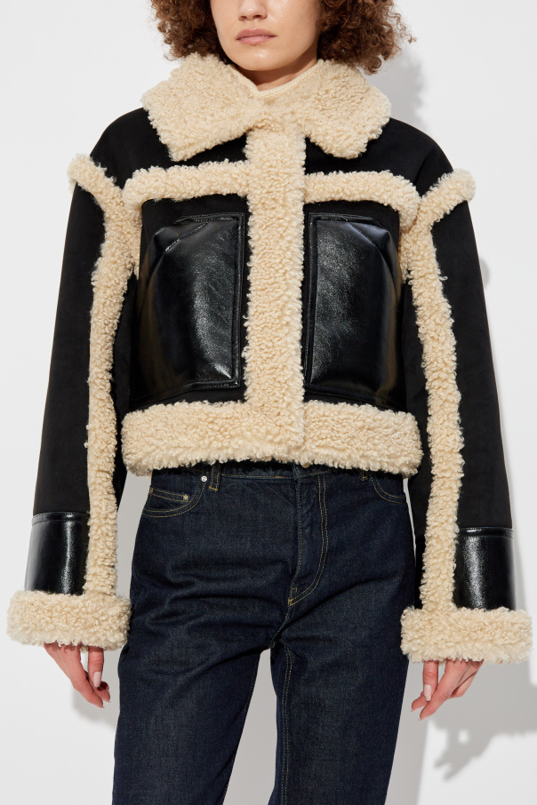 Introducing the Edith Jacket from the exclusive collection by STAND STUDIO. This luxurious piece epitomizes the perfect fusion of contemporary trends and timeless elegance. Designed with a short, fitted silhouette that gracefully reaches the waist, this jacket features a broad collar and straight sleeves finished with elegant cuffs. The unique interplay of materials is what sets this jacket apart. The dominant dark fabric, possibly leather or eco-leather, is exquisitely complemented by light, plush accents reminiscent of sheepskin. The jacket’s striking geometric patterns are defined by the plush material, creating a bold contrast against the dark backdrop. Two large, rectangular pockets crafted from glossy dark material enhance its practicality and style. Additionally, the sleeves boast dark cuffs, accented by light trims for a sophisticated finish. Minimalist in its branding, the Edith Jacket focuses on impeccable design, making it a standout piece in any wardrobe. The dominant black color, highlighted with cream accents, offers a chic yet casual appeal, perfect for cooler days. Why Choose This Product? Exquisite Design: The fusion of dark and light materials creates a unique and striking look. Premium Materials: Crafted from high-quality polyester and elastane for durability and comfort. Functional Elegance: Features two large, convenient pockets for practicality. Minimalist Branding: Focuses on design excellence rather than overt logos.