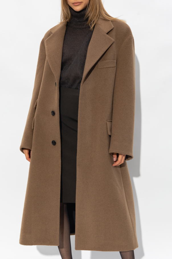 Brown coat from Saint Laurent. Made of wool with a relaxed fit, this style features button fastenings with a concealed placket, notch lapels, four pockets on the front (three have flaps), long sleeves and a single back vent.