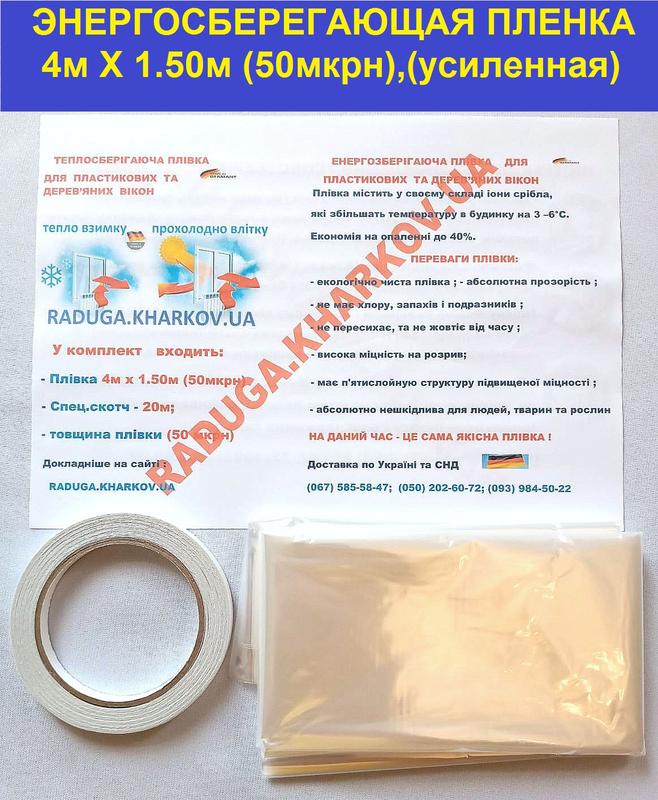 4м х 1.50м+ скотч(20 м) = 300 грн - (50 мкр);Плотность термопленки: