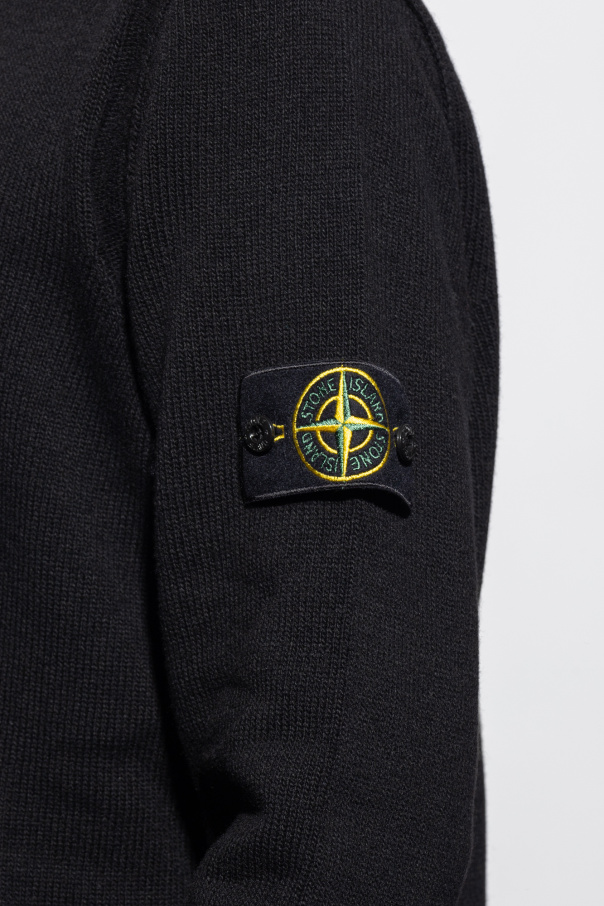 Black crewneck sweater from Stone Island. Crafted from wool, this long sleeve design features a detachable sleeve patch with a logo and ribbed edges.