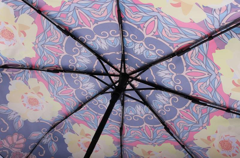 современных тенденциях.Что же касается конструкции, то зонт компактный в 3 сложения, открывается и