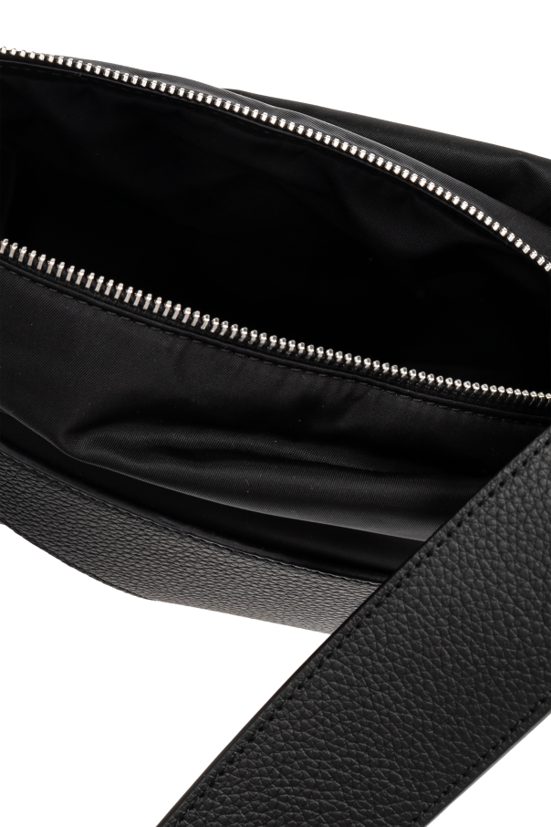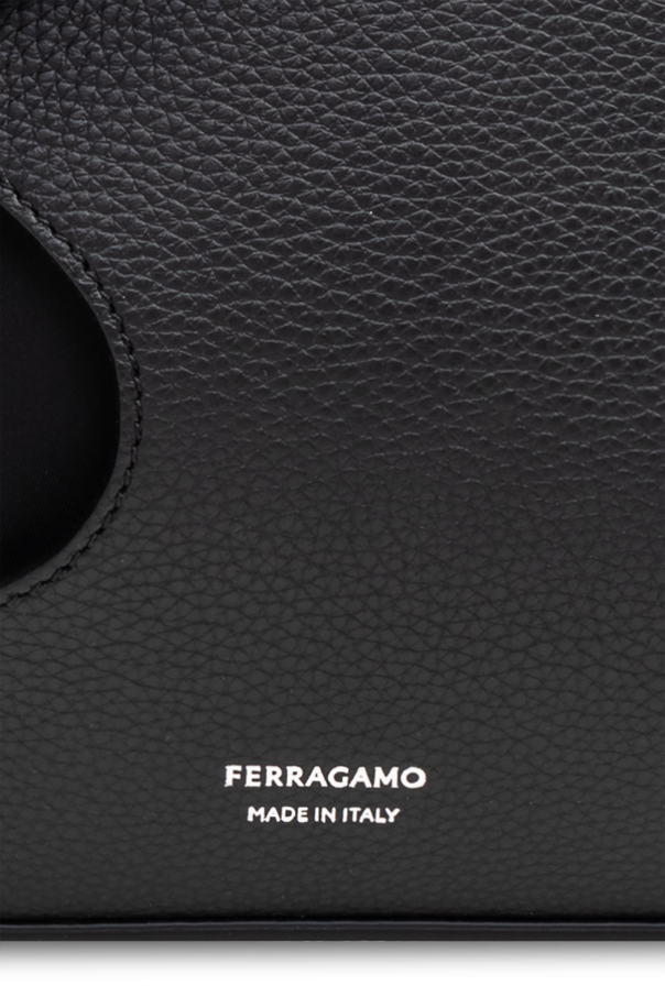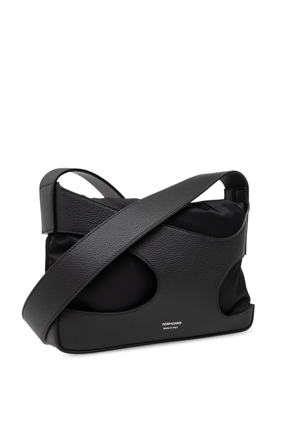 Introducing the epitome of sophisticated style and functionality: the Ferragamo Men's Shoulder Bag. Crafted from a luxurious blend of materials including high-quality leather, with grainy texture, acrylic, and nylon, this accessory is not just a bag, but a statement of elegance and durability. Its rectangular shape, softened by rounded bottom corners, exudes a modern charm, while the unique, large rounded cutouts on the front add an artistic flair that sets this piece apart. The bag's broad, flat strap ensures comfort for all-day wear, crossing over the front in a stylish and practical design. This feature, combined with its medium size, makes it an ideal companion for daily use, effortlessly accommodating your essentials. The interior reveals a thoughtfully lined compartment, secured with a zipper closure to safeguard your belongings. The presence of the designer's logo, "Ferragamo - Made in Italy," subtly placed, underscores the exclusivity and superior craftsmanship synonymous with the brand. Why Purchase This Product? Elegant design with unique front cutouts, offering a distinctive look. Constructed from a composition of premium materials, ensuring longevity and resilience. Comfortable and functional strap design for effortless daily wear. Secured compartment with zipper closure for safe storage of personal items. Exclusive Ferragamo branding, symbolizing luxury and high-fashion craftsmanship.
