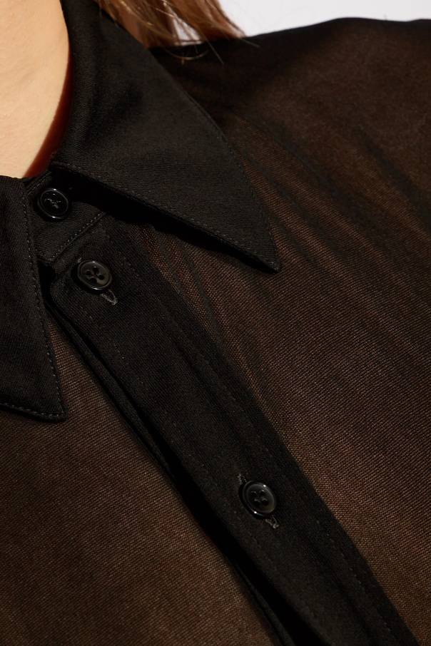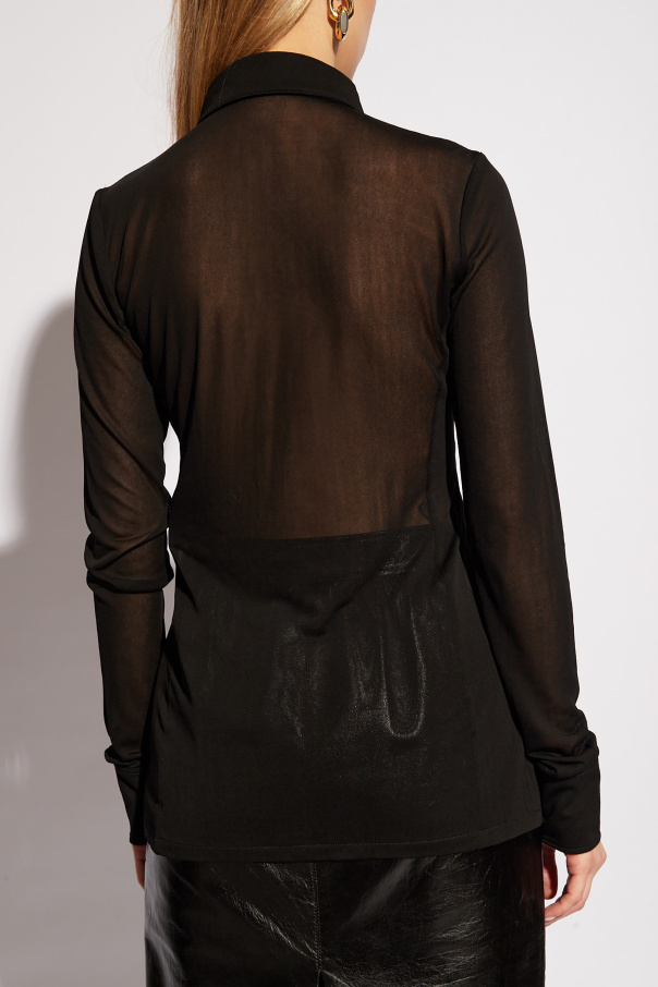 Introducing an exquisite piece of craftsmanship from the house of Saint Laurent, the Transparent Polo. This sartorial masterpiece reimagines the classic polo silhouette with a daring twist, presenting an ensemble that encapsulates both elegance and avant-garde aesthetics. The dominant black hue enhances its versatility, allowing it to serve as a statement piece in any sophisticated wardrobe. Crafted from the finest 100% viscose, this polo exudes a delicate sheerness, achieved through the use of high-quality materials such as chiffon or organza. Its lightweight fabric not only offers a glimpse of allure but also promises unparalleled comfort and breathability. The traditional polo collar, long sleeves, and buttoned cuffs are meticulously designed, ensuring a blend of timeless style and modern sensibilities. Furthermore, its seamless integration with contemporary fashion is demonstrated through its styling potential. When paired with a sleek, black leather skirt, the Transparent Polo by Saint Laurent transcends conventional boundaries, offering a modern, chic look that is bound to captivate and impress. Why Purchase This Product? Elegance Redefined: A unique take on the classic polo, offering a sophisticated edge to your attire. Exquisite Material: Made from 100% viscose, providing a light, airy feel with a hint of transparency. Versatile Styling: Effortlessly pairs with both casual and formal ensembles, enhancing every look with its sheer elegance. Iconic Design: Impeccable craftsmanship from Saint Laurent, ensuring quality and durability without compromising on style.