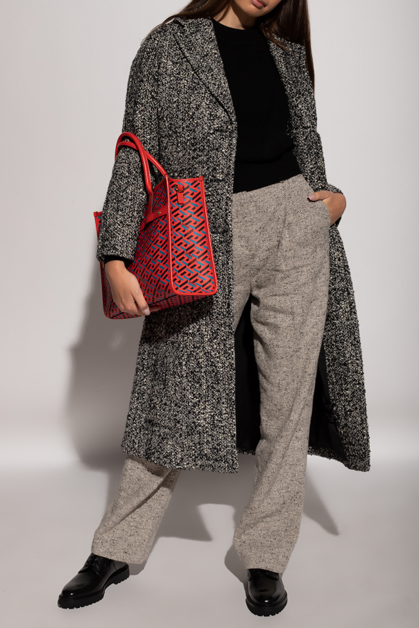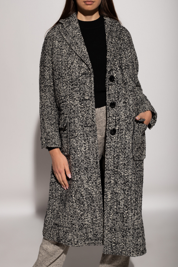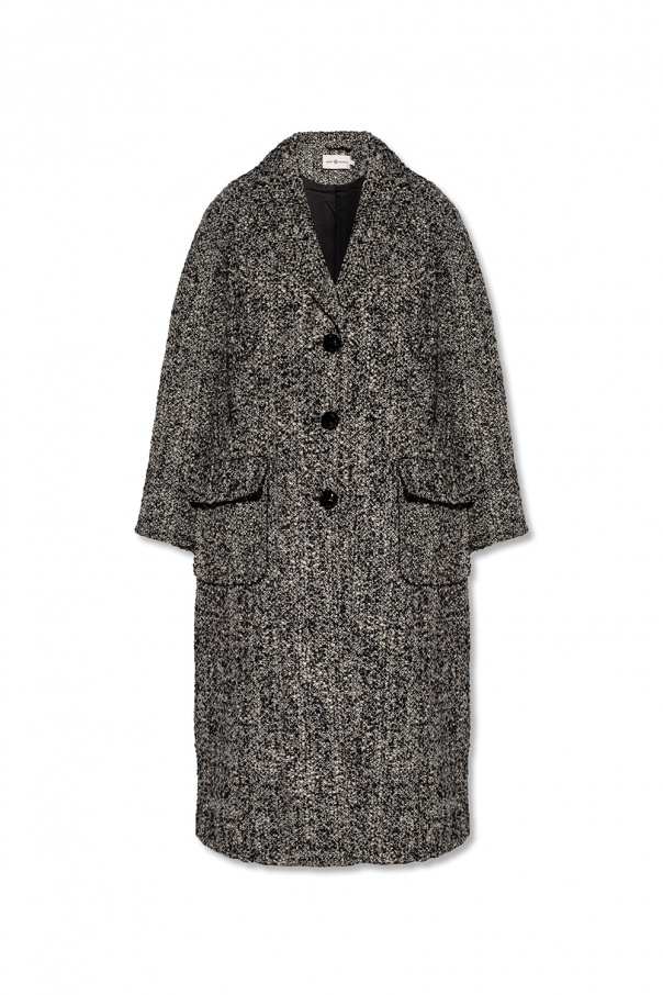Black, white and grey coat from Tory Burch. Crafted from wool, this style features button fastenings, notch lapels, two flapped pockets and long sleeves.