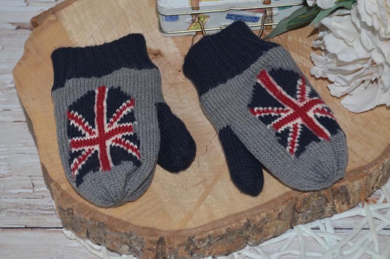 4 - 6 лет М/L фирменные вязаные перчатки с флисом детские с орнаментом ГЭП Gap.