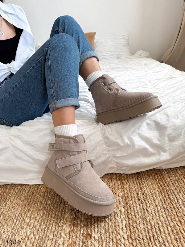 Матеріал верху:Замша , Шкіра ,Висота виробу:Середні ,Халява:Стандартна ,Сезон:Зима ,Матеріал підкладки:Хутро ,Тип підошви:Платформа ,Довжина устілки:25,5 см , 25 см , 24,5 см , 23,5 см , 24 см , 26 см ,Опис