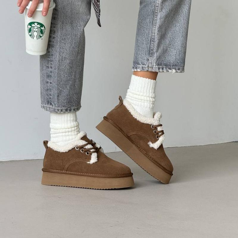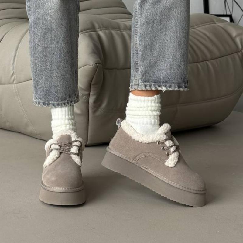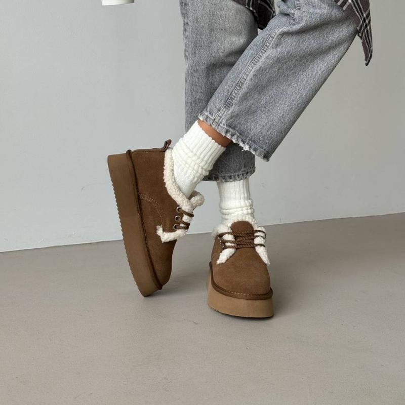 Матеріал верху:Замша ,Висота виробу:Низькі ,Застібка:Шнурівка ,Халява:Стандартна ,Сезон:Зима , Осінь ,Матеріал підкладки:Хутро ,Тип підошви:Платформа ,Довжина устілки:25,5 см , 25 см , 24,5 см , 23 см , 23,5 см , 24 см , - Shipping