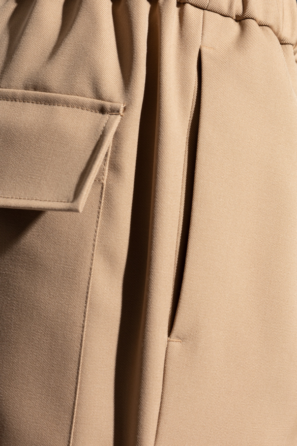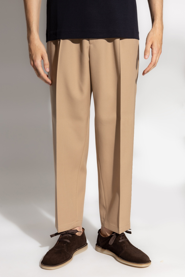 Introducing the quintessence of sophistication and versatility: the Beige Trousers from the renowned designer, JIL SANDER. Crafted with meticulous attention to detail, these trousers are an embodiment of elegance and high-quality construction, making them a pivotal addition to any discerning wardrobe. Made from 100% Wool, these trousers exude a smooth, unified shade of beige or light camel, ensuring not only luxury in every thread but also durability and comfort. Their classic straight-leg design, ending at the ankle, lends itself to a plethora of styling options, from formal to casual ensembles. Key features include an elastic waist for unparalleled comfort and fit, darts on the front adding structure and shape, and inset pockets that maintain the sleek silhouette. The precision in sewing and the fabric's quality are evident, showcasing the designer's commitment to excellence. Why Purchase This Product? Elegant and timeless design suitable for various occasions. Constructed from high-quality 100% Wool, offering durability. Comfortable fit ensured by an elastic waist and precise tailoring. Unique details like front darts and discreet pockets enhance the sophistication. From the prestigious JIL SANDER, a testament to luxury and style.