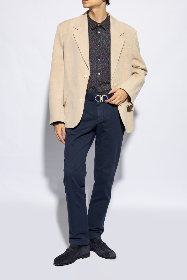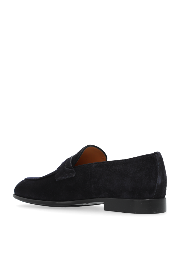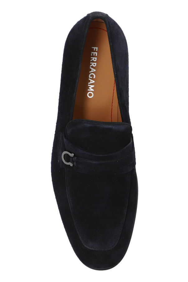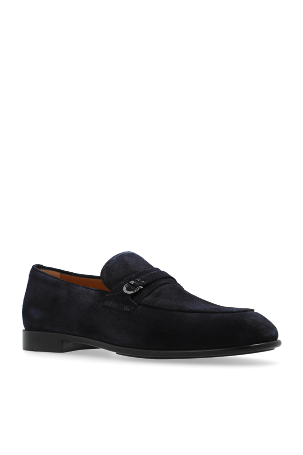Introducing the ‘Desio’ Leather Loafers by FERRAGAMO, an epitome of refined craftsmanship and understated luxury. Crafted from high-quality suede, these loafers present a deep navy hue that exudes a sense of sophisticated allure. The plush suede texture, complemented by a distinctive metal buckle on each shoe, adds a touch of elegance and serves as a hallmark of the brand's attention to detail. The interior boasts a supple leather insole in a light brown shade, featuring a contrasting brand inscription that signifies luxury with every step. Designed with a flat rubber sole and rounded toe, these loafers blend classic styling with modern comfort. The additional width in the insole ensures an exceptionally comfortable fit, making the ‘Desio’ loafers not only a statement of style but also a testament to thoughtful design. Their lightweight and versatile nature allows them to transition seamlessly between casual and formal settings, perfectly complementing tailored trousers and blazers. The meticulous stitching along the front edge further accentuates their classic silhouette, showcasing the quality synonymous with the FERRAGAMO legacy. Why Purchase These Loafers? Unparalleled Quality: Crafted from superior suede and leather, offering durability and a luxurious feel. Elegant Design: The deep navy color and distinctive metal buckle add a touch of elegance and exclusivity. Versatile Style: Perfect for any occasion, these loafers can elevate any outfit, whether casual or formal. Enhanced Comfort: The extra-wide insole ensures a comfortable fit, ideal for extended wear. Legacy of Craftsmanship: Designed by FERRAGAMO, a brand renowned for quality and timeless style.