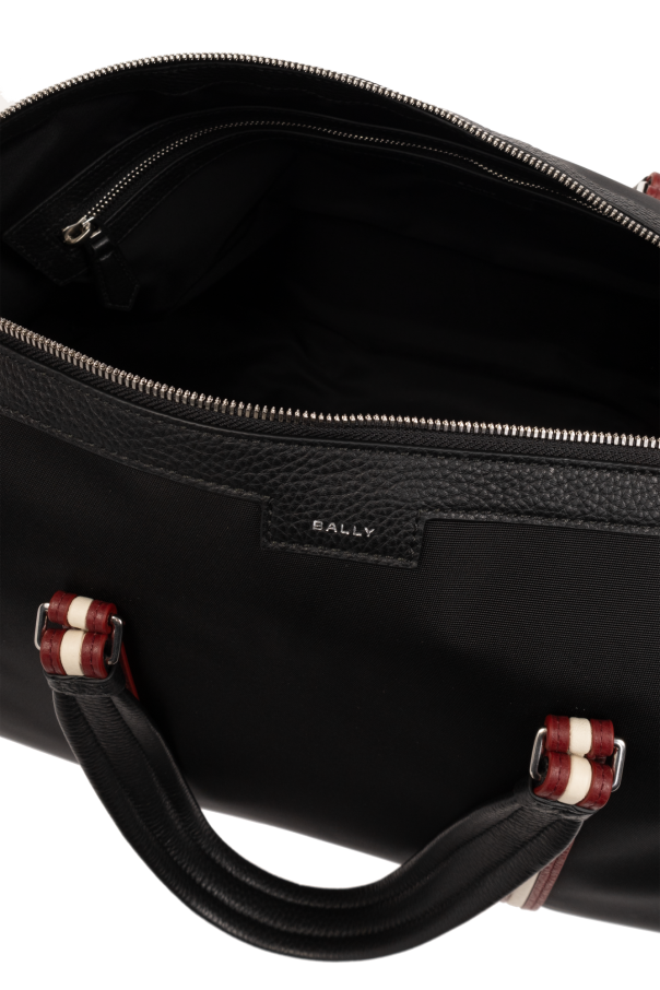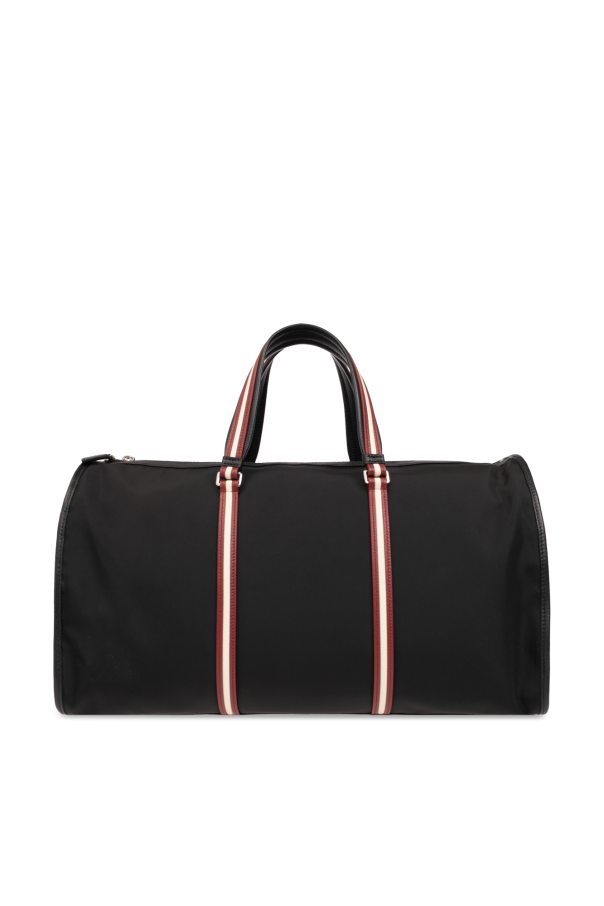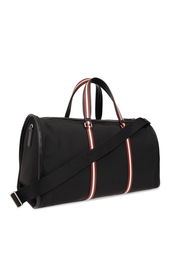 Introducing the ‘Code’ Men’s Carry-On Bag by Bally - a paragon of sophistication, designed for the discerning traveler. This exquisite piece is enveloped in an opulent black hue, adorned with distinctive horizontal stripes in a bold red with white accents, seamlessly blending style with visibility. Crafted from a material with a texture reminiscent of dense fabric or nylon, this carry-on bag promises durability and resistance to wear and atmospheric conditions. Its design features long, black handles for hand or shoulder carrying, complemented by an additional, detachable, and adjustable shoulder strap, offering versatility and comfort in transit. The main compartment, secured with a bi-directional zipper, ensures the safekeeping of your essentials, while the internal zippered pocket and three slip pockets facilitate impeccable organization. The subtle embossed brand name on a fabric label within, signifies exclusivity and heritage, distinguishing the ‘Code’ carry-on bag as a masterpiece of luxury travel gear. The rectangular shape not only epitomizes the classic travel bag but also maximizes internal space, making it an ideal companion for your journeys. Why Invest in This Product? Exceptional Durability: Resistant material and craftsmanship promise longevity. Elegant Design: Unique color scheme and embossed brand detailing denote sophistication. Functional Versatility: Multiple carrying options and organized compartments cater to all travel needs. Exclusivity: A Bally masterpiece, the ‘Code’ carry-on bag is a testament to luxury travel.