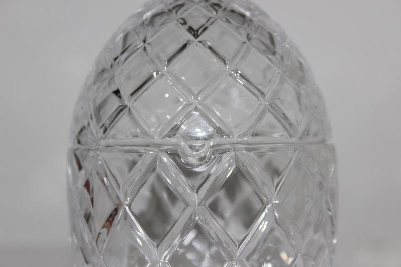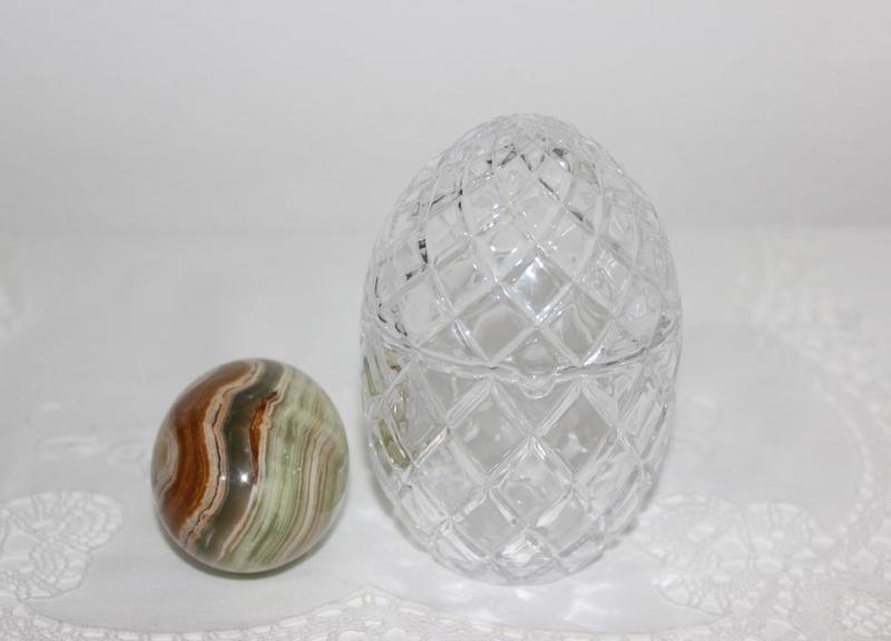 Хрустальная шкатулка в форме яйца с гравированным узором ручной работы. Можно использовать для хранения украшений, как конфетницу или как подсвечник для чайных свечей